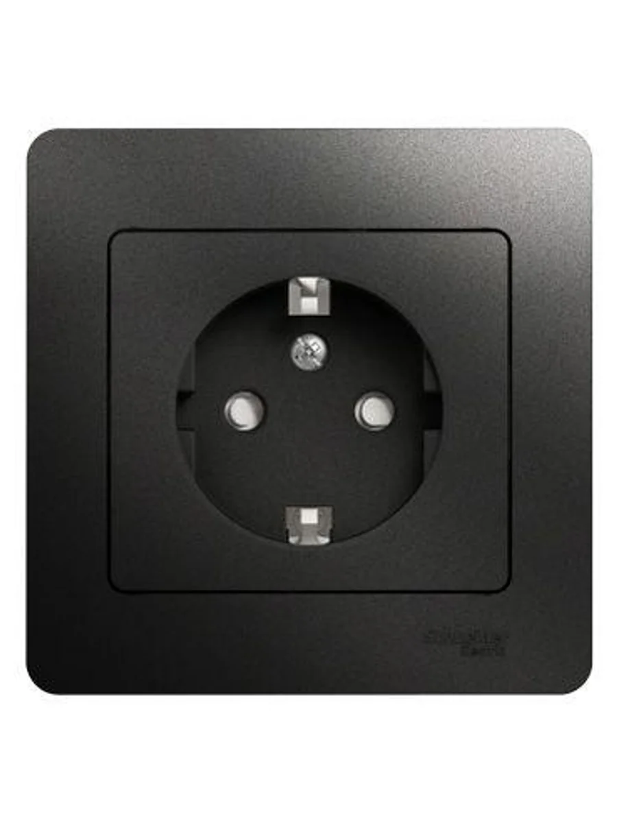 Розетка Systeme Electric (ранее Schneider Electric) серии Glossa (в сборе, цвет антрацит) одинарная с заземлением и без шторок подходит для сетей 250 В, на ток 16 А. - Заземляющий контакт обеспечивает дополнительную защиту от удара электрическим током. При наличии заземления электрический потенциал уходит в землю, защищая человека. - Выполнен из материала PС+ASA, стойкого к УФ-излучению и появлению царапин. - Эргономичные клеммы розеток расположены в один ряд.
