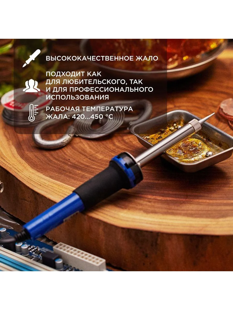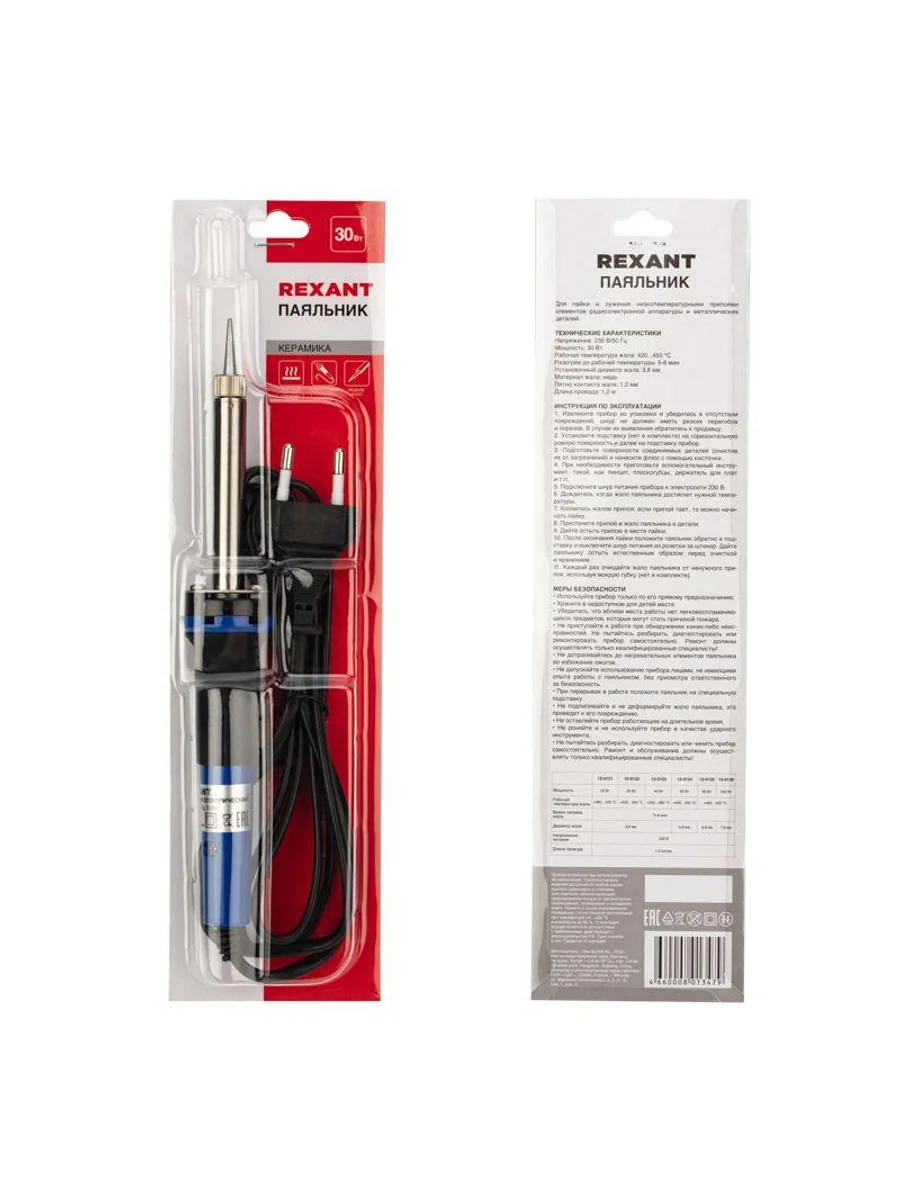 Паяльник с долговечным жалом мощностью 30Вт REXANT предназначен для ручного монтажа/демонтажа электронных компонентов и других мелких деталей. Подходит как для любительского, так и для профессионального использования. Долговечное жало паяльника состоит из медьсодержащего сердечника, покрытого слоем электролитически осажденного железа, отличающегося высокой стойкостью к коррозии. При соблюдении ряда предосторожностей жало способно работать длительное время без утраты эксплуатационных свойств, а в случае необходимости его можно легко и быстро заменить (сменное жало в комплект не входит). Нагреватель имеет керамическую трубку, которая повысит энергоэффективность прибора. Паяльник оснащен ударопрочной рукояткой из термостойкого пластика с резиновой накладкой, которая сделает работу с инструментом легкой и приятной.