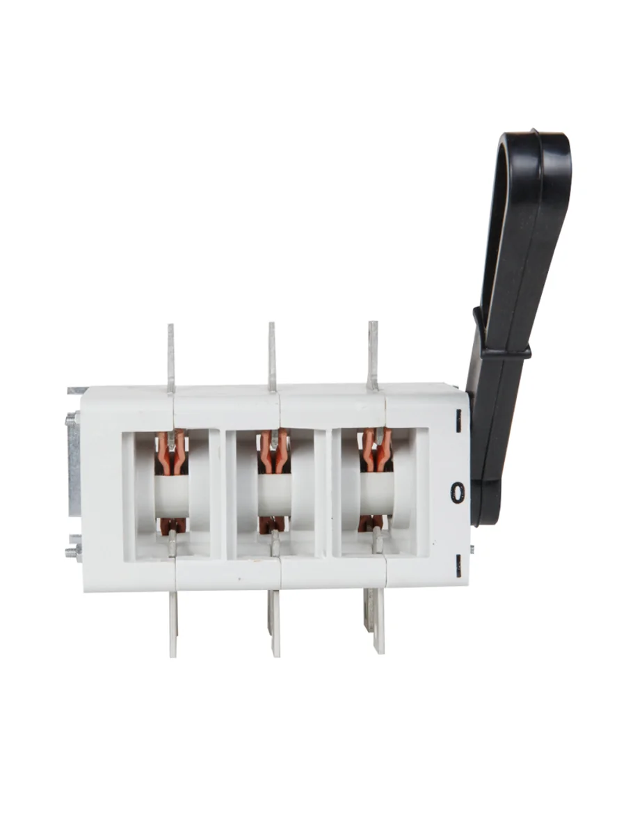 Выключатель-разъединитель 3 полюсный на номинальный ток 100 А, в котором установлена несъемная рукоятка.