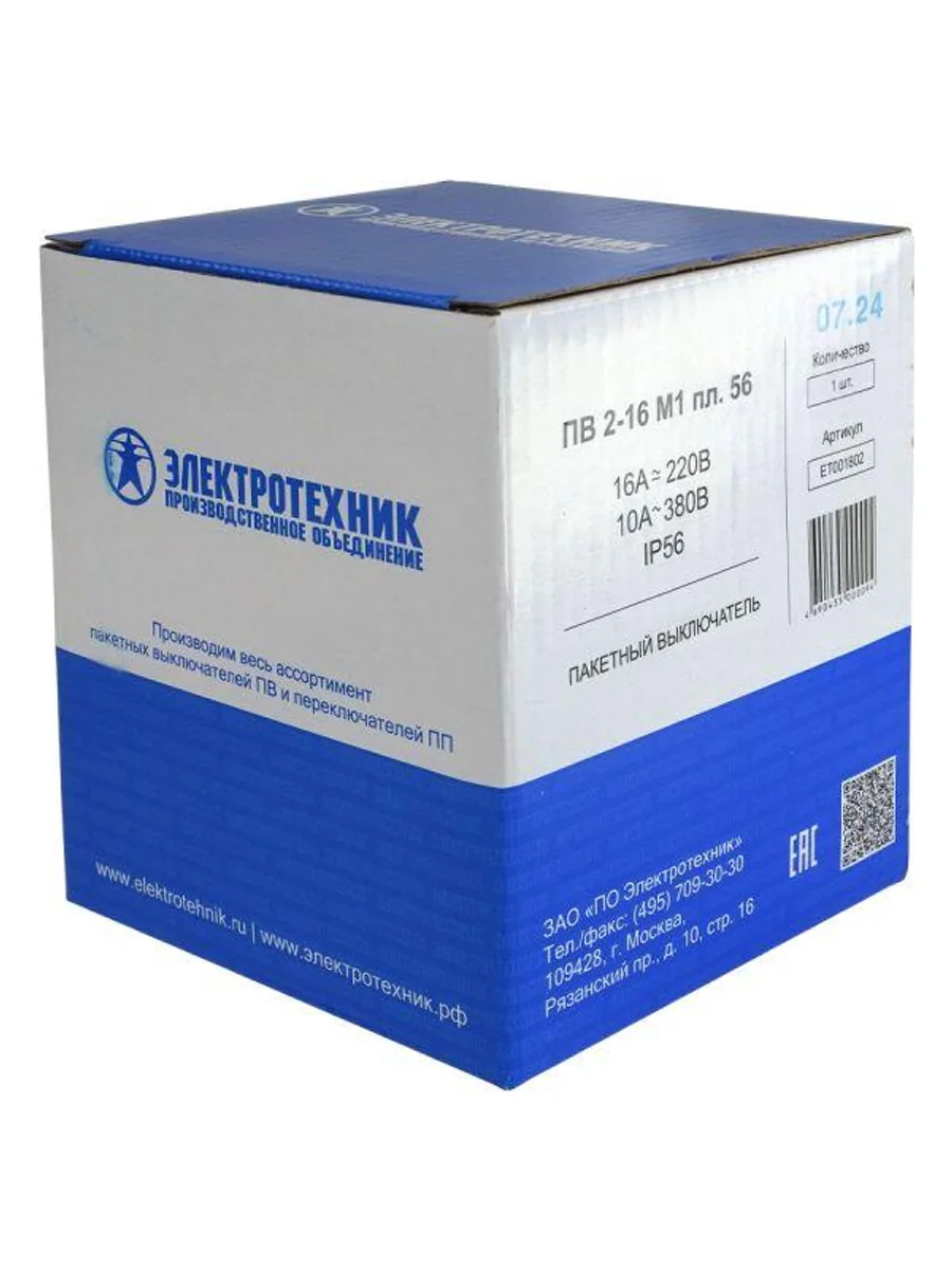 Выключатель пакетный ПВ2-16А М1 в пл. корп. IP56 Электротехник ET001802 - купить в KeepBuilding | KeepBuilding