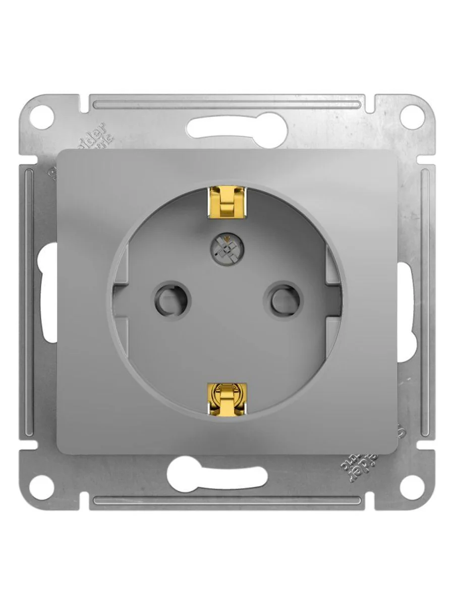 Механизм Systeme Electric серии Glossa (цвет алюминий) розетки одинарной с заземлением и шторками подходит для сетей 250 В, на ток 16 А. - Заземляющий контакт обеспечивает дополнительную защиту от удара электрическим током. При наличии заземления электрический потенциал уходит в землю, защищая человека. - Выполнен из материала PС+ASA, стойкого к УФ-излучению и появлению царапин. - Эргономичные клеммы розеток расположены в один ряд (ранее Schneider Electric MGU5.037.30ZD, NU503730).