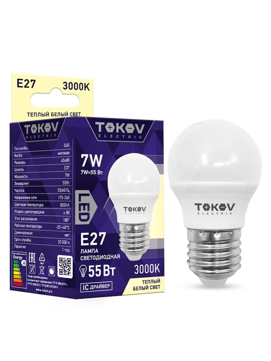 Лампа светодиодная 7Вт G45 3000К Е27 176-264В TOKOV ELECTRIC TKE-G45-E27-7-3K - купить в KeepBuilding | KeepBuilding