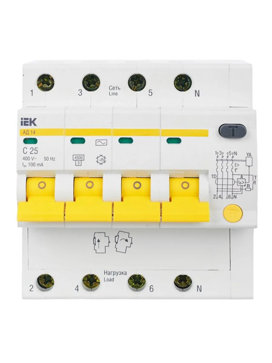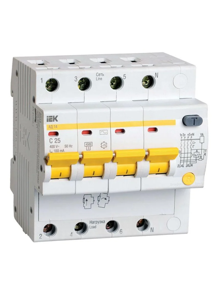 Выключатель автоматический дифференциального тока 4п C 25А 100мА тип AC 4.5кА АД-14 KARAT IEK MAD10-4-025-C-100 - купить в KeepBuilding | KeepBuilding