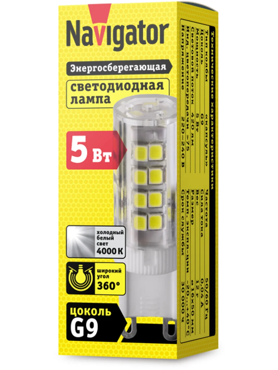 Лампа светодиодная 71 267 NLL-P-G9-5-230-4K 5Вт капсульная 4000К нейтр. бел. G9 420лм 220-240В Navigator 71267 - купить в KeepBuilding | KeepBuilding
