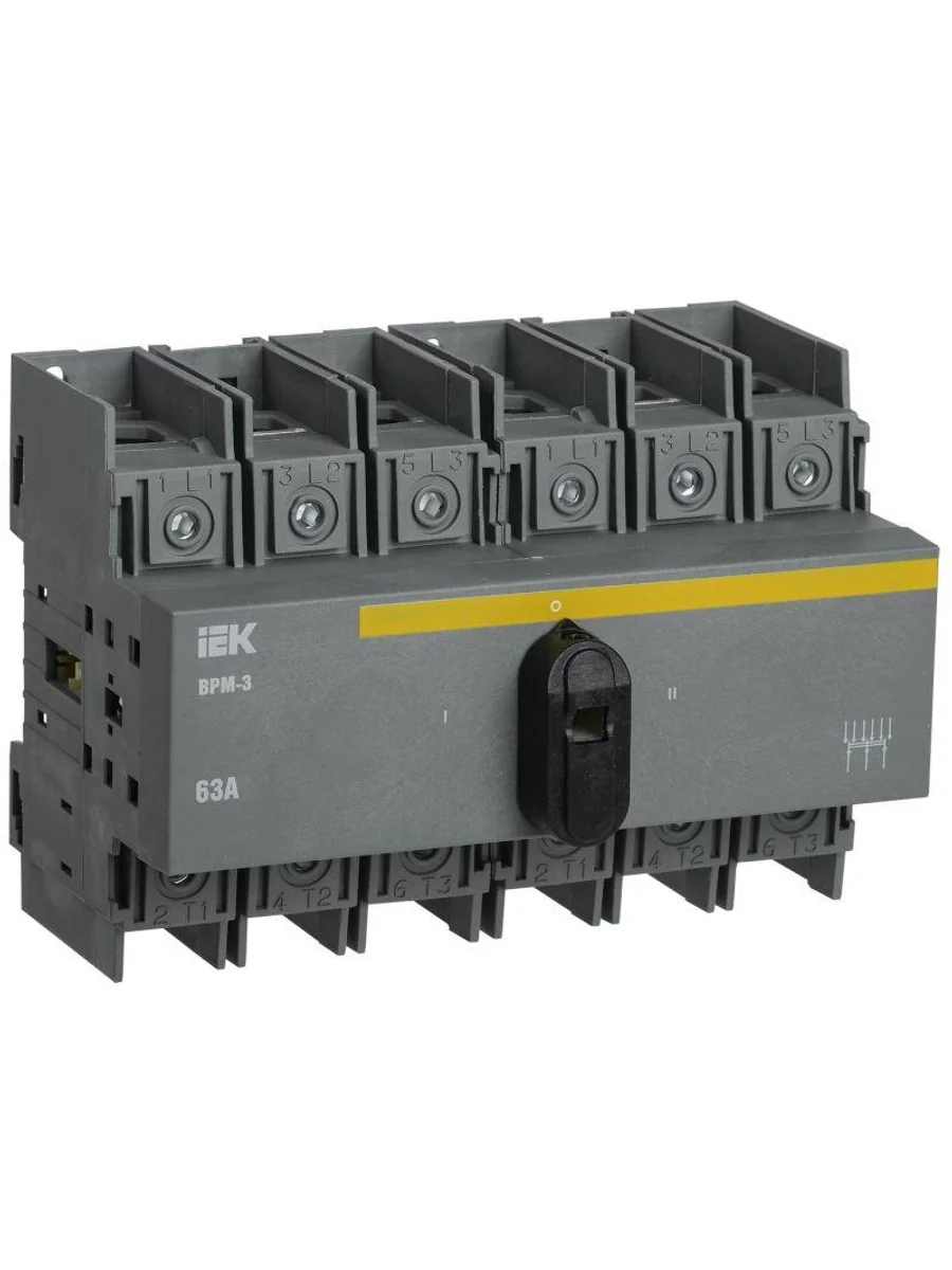 Выключатели-разъединители модульные ВРМ IEK предназначены для коммутации смешанных и индуктивных нагрузок в цепях переменного тока, а также для переключения на резервное питание электрических цепей переменного тока.
