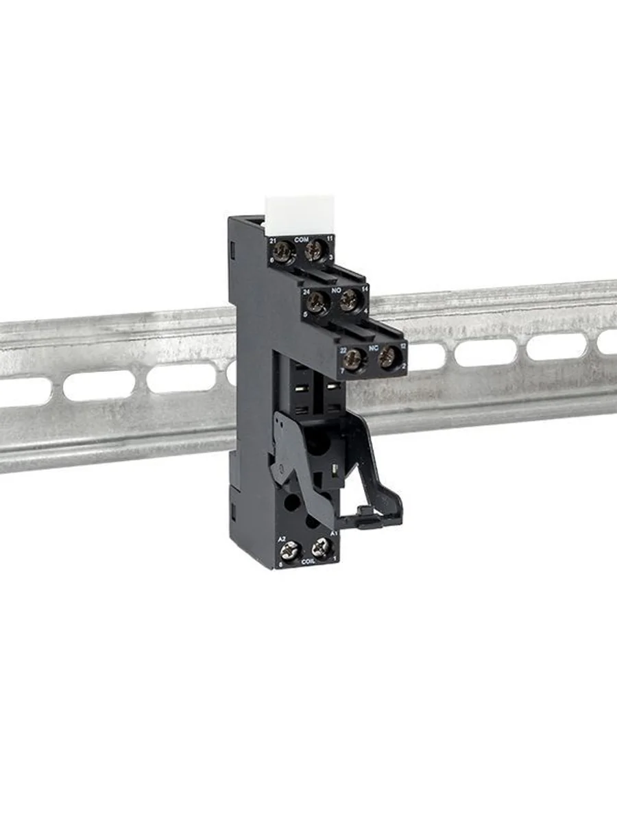 Разъемы модульные серии РМ4/РМ5 предназначаются для крепления реле промежуточных на 35-мм монтажной DIN-рейке. На модульном разъеме располагаются зажимы выводов переключающих контактов и катушки. Разъемы Push-in оснащены зажимными клеммами, в остальных разъемах используются винтовые клеммы.