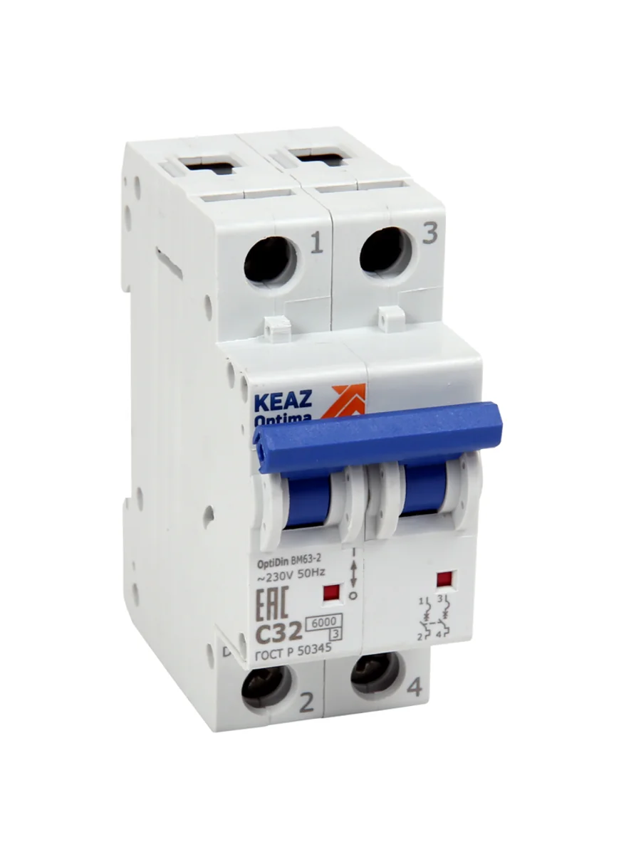 Выключатель автоматический модульный 2п C 16А 6кА OptiDin BM63-2C16-УХЛ3 КЭАЗ 260599 - купить в KeepBuilding | KeepBuilding