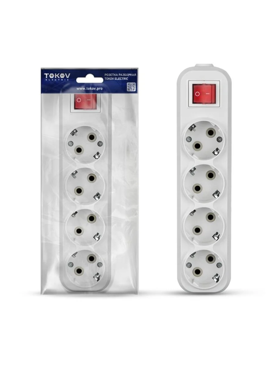 Колодка удлинителя 4-м 16А с заземл. с выкл. АБС-пластик бел. TOKOV ELECTRIC TKE-C01-KU4-ZV - купить в KeepBuilding | KeepBuilding