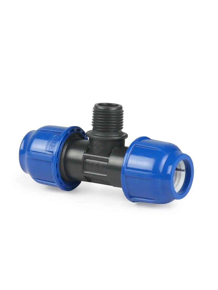 Тройник компрессионный наружн. резьба PN16 d20х1/2дюйм для ПЭ труб RTP 11613