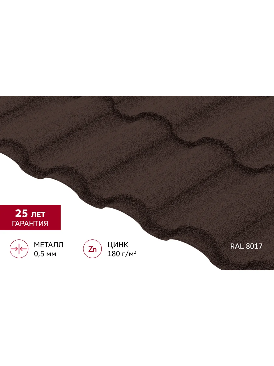 - Цвет: RAL 8017 (шоколад), который придаёт кровле элегантный и современный вид.