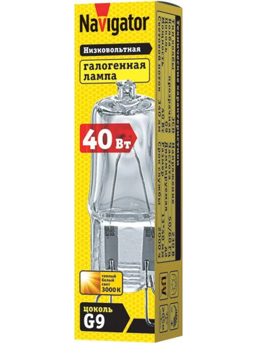 Лампа галогенная 94 215 JCD9 40Вт капсульная G9 3000К 230В clear 2000h Navigator 94215 - купить в KeepBuilding | KeepBuilding