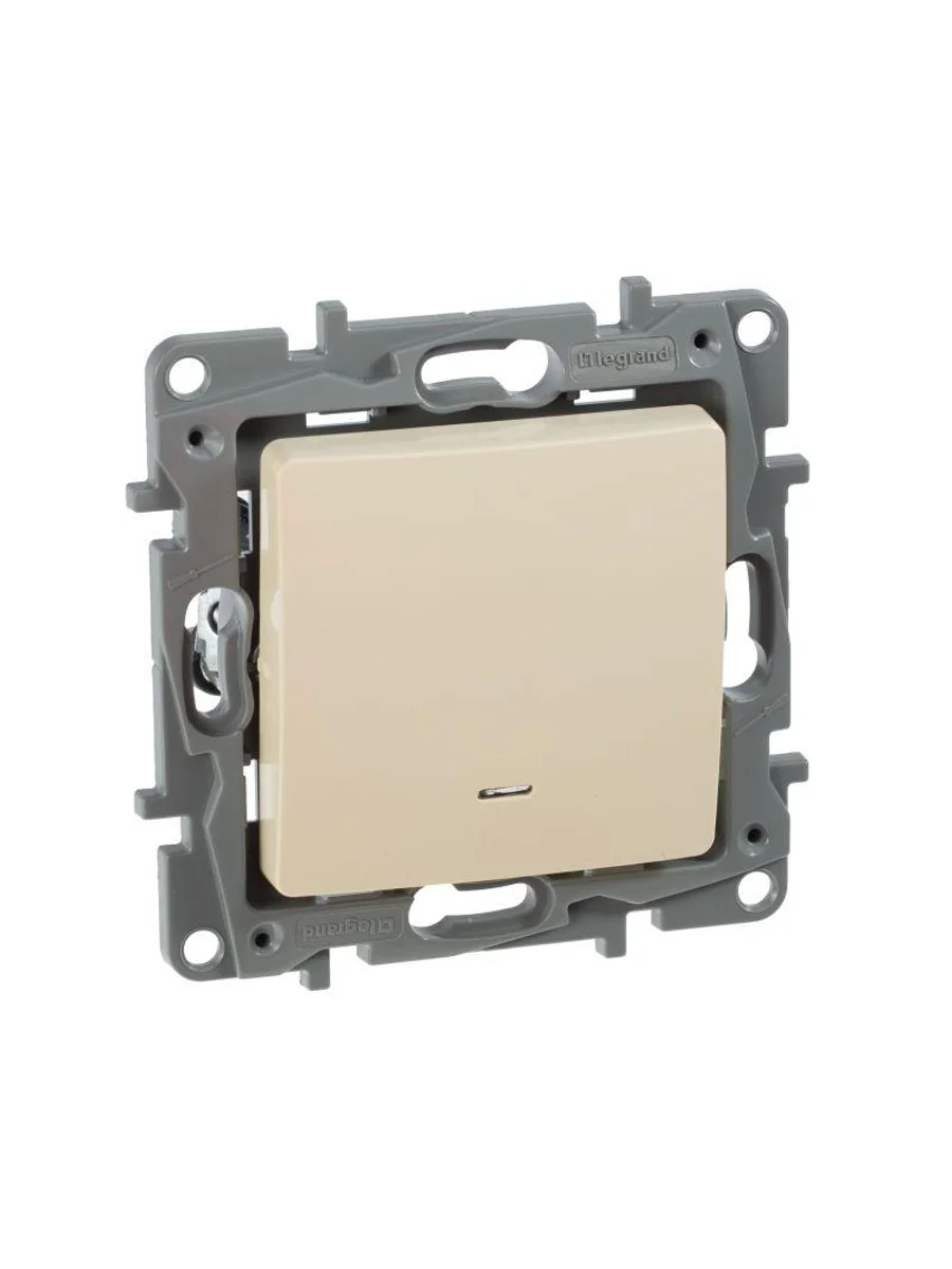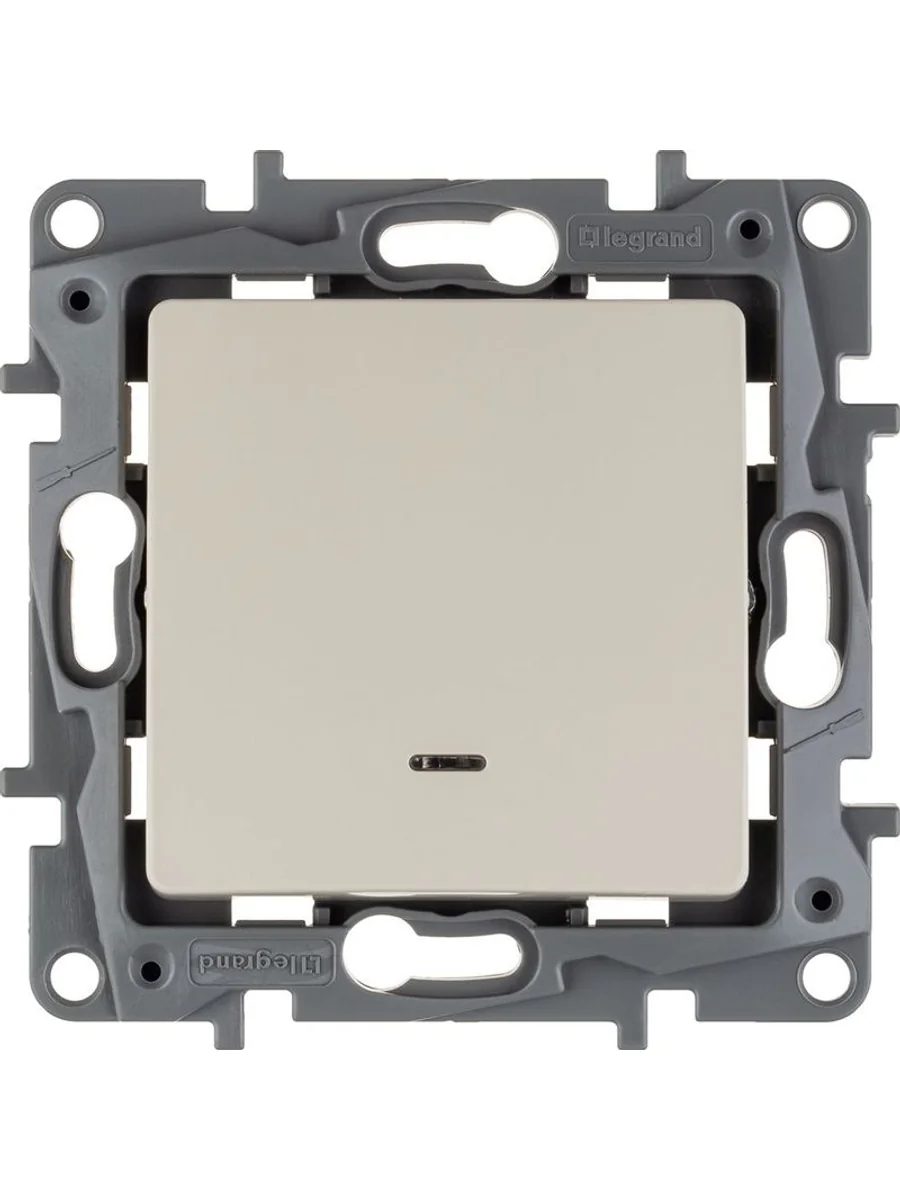 Выключатель с подсветкой одноклавишный ETIKA для скрытого монтажа, номинальный ток 10 А. Используется для управления приборами освещения, вентиляции и т.д.