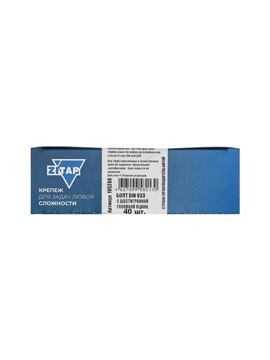 Болт с шестигранной головкой М8х25 DIN 933 оцинк. (уп.40шт) Tech-Krep/Zitar 105208
