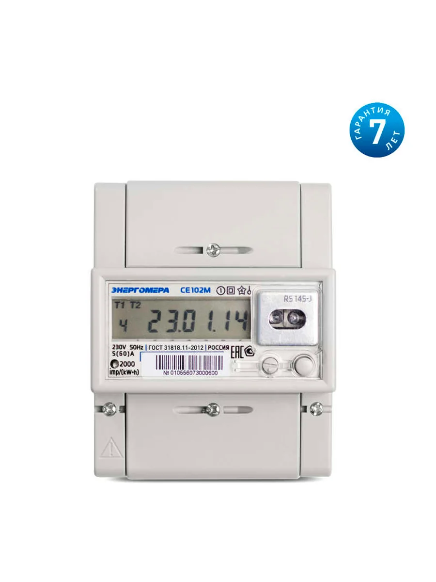 Однофазный многотарифный электросчетчик серии «СЕ». Устанавливается на DIN-рейку. Измерение активной электроэнергии в однофазных цепях переменного тока. Организация учета по четырем тарифам с передачей накопленной информации через оптический интерфейс или RS485. Возможность считывания накопленных показаний при отсутствии напряжения сети, а также измерения и отображения на дисплее параметров сети.