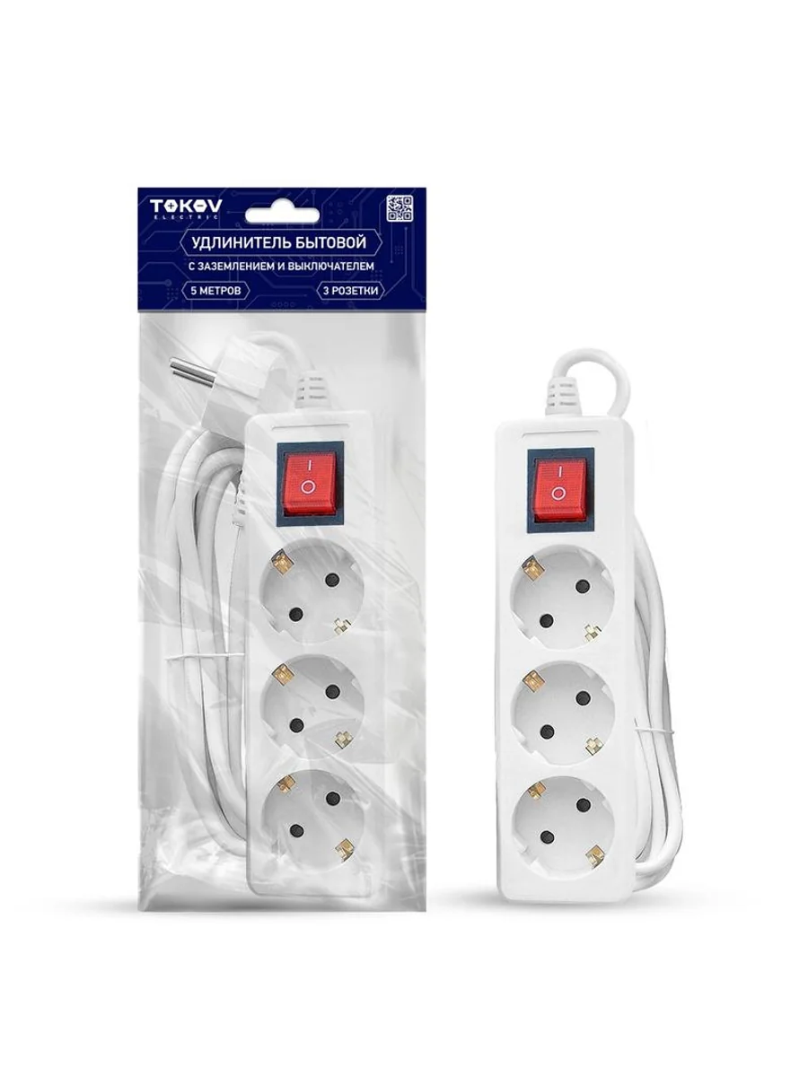Удлинитель 3х5м с заземл. с выкл. 16А 3х1 TOKOV ELECTRIC TKE-C01-BU3-5-1-ZV - купить в KeepBuilding | KeepBuilding