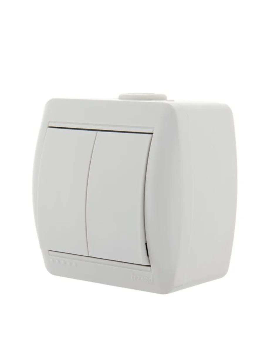 • НАЗНАЧЕНИЕ Выключатель 2-клавишный это двухпозиционный коммутационный аппарат с замыкающими (нормально-разомкнутыми) контактами, предназначенный для работы в сетях с напряжением до 1000 вольт, не предназначенный для отключения токов короткого замыкания, без специальных устройств дугогашения, местного управления, с ручным приводом. • ОБЛАСТЬ ПРИМЕНЕНИЯ В основном применяются для включения и выключения освещения в бытовых и производственных условиях. • ПРИНЦИП ДЕЙСТВИЯ Принцип действия основан на коммутации контактов механическим способом (нажатием) , при этом положения коммутации фиксированы и позволяют находится в этом режиме достаточно долго, вплоть до следующего воздействия. • ДОПОЛНИТЕЛЬНЫЕ ПРИНАДЛЕЖНОСТИ ИЛИ АКСЕССУАРЫ