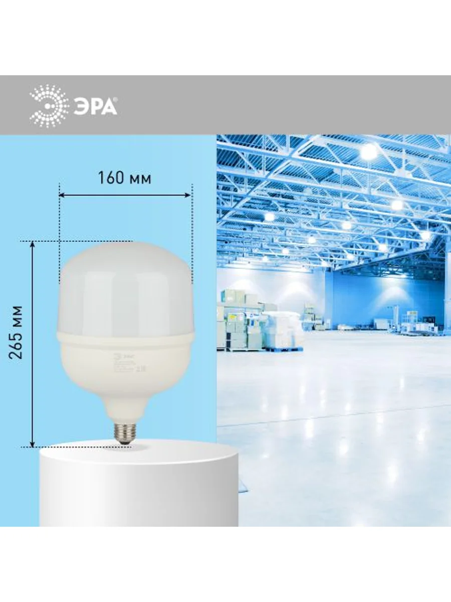 Лампа светодиодная ЭРА Серии Стандарт для освещения производственных, торговых и подсобных помещений. Отличается высокой мощностью, грамотно продуманной системой охлаждения и широким выбором цветовых температур