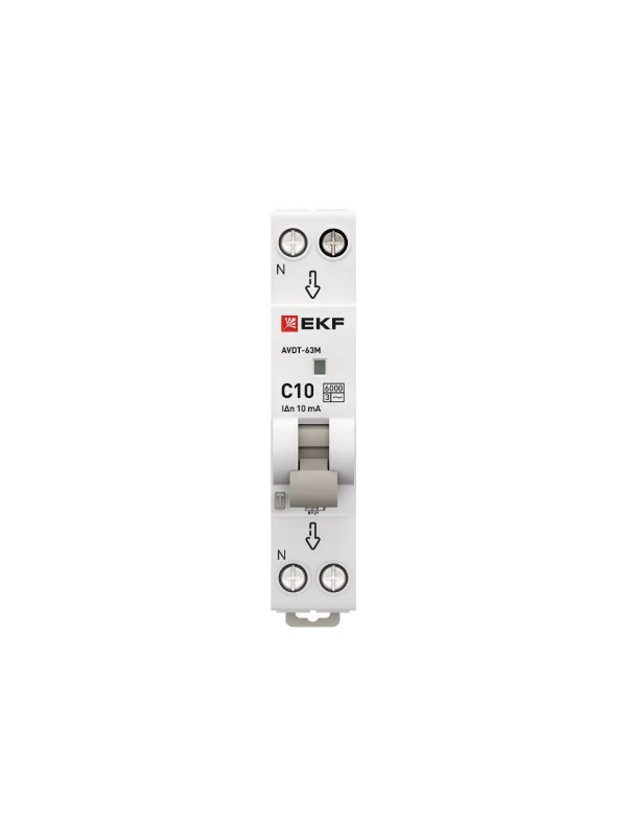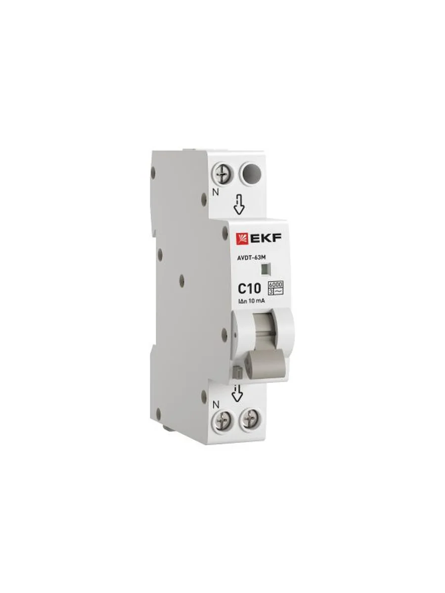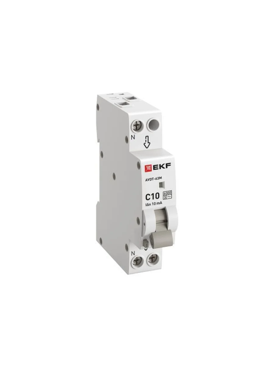 Выключатель автоматический дифференциального тока 1мод. C 10А 10мА тип АС 6кА АВДТ-63М (электрон.) EKF DA63M-10-10 | KeepBuilding