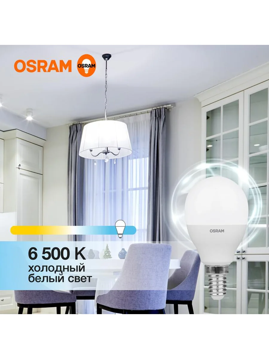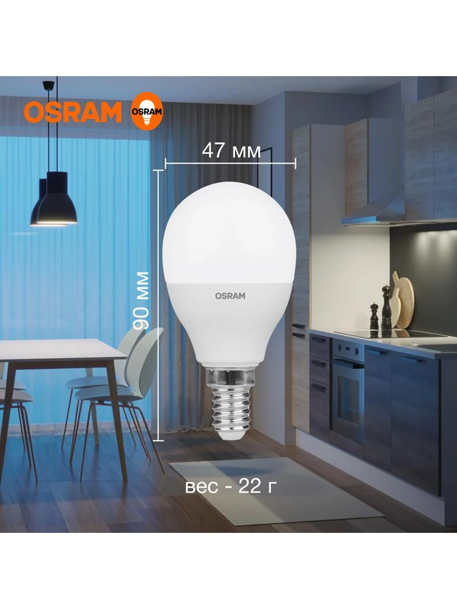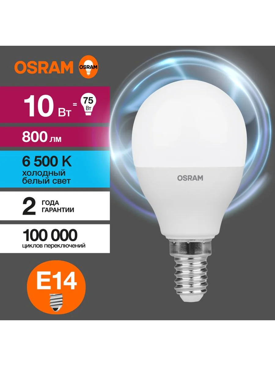 Светодиодные лампы OSRAM - разумная замена традиционным лампам накаливания или галогенным лампам. Светодиодные лампы OSRAM снижают затраты на освещение до 90% при сохранении привычного уровня освещенности. Эта лампа OSRAM серии LED Value выполнена в форме колбы P ("шарик") с цоколем E14. Материал колбы - пластик, исполнение - матовое. Световой поток 800 люмен, что соответствует лампе накаливания на 75 Вт. Такие лампы применяются для внутреннего освещения, хотя в закрытом светильнике можно использовать и на улице. Эта лампа излучает холодный белый свет, угол пучка - широкий. Качество света на высоте: низкие пульсации защищают глаза, а высокий индекс цветопередачи позволяет видеть мир в его истинном цвете. Кроме того, лампы OSRAM полностью безопасны для здоровья, поскольку в них нет опасных материалов по европейскому стандарту RoHS, а также они не производят вредных электромагнитных излучений, что подтверждено ЭМС (сертификат электромагнитной совместимости). Лампа проработает долго: срок службы - 25000 часов, 2 года гарантии. Светодиодные лампы OSRAM - умный выбор для здоровья семьи и кошелька!