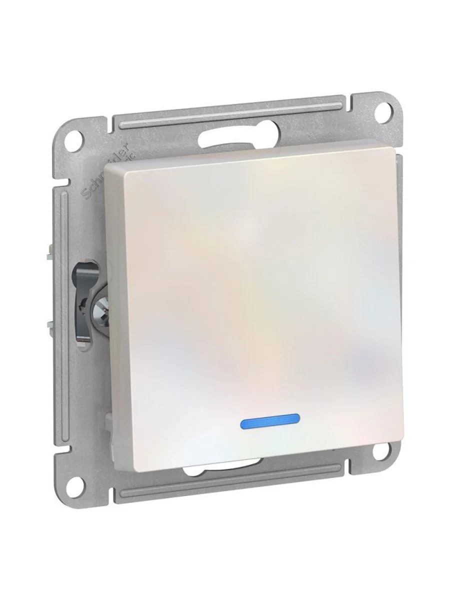 Механизм выключателя 1-клавишного с подсветкой Systeme Electric (ранее Schneider Electric) серии AtlasDesign в цвете жемчуг подходит для сетей 250 В, на ток 10 А. Благодаря светодиодной подсветке синего цвета изделие легко найти в темноте. Лицевые детали из качественного ABS-пластика, устойчивого к царапинам и УФ-излучению. Усиленные прямые монтажные лапки для лучшей фиксации механизма в монтажной коробке.