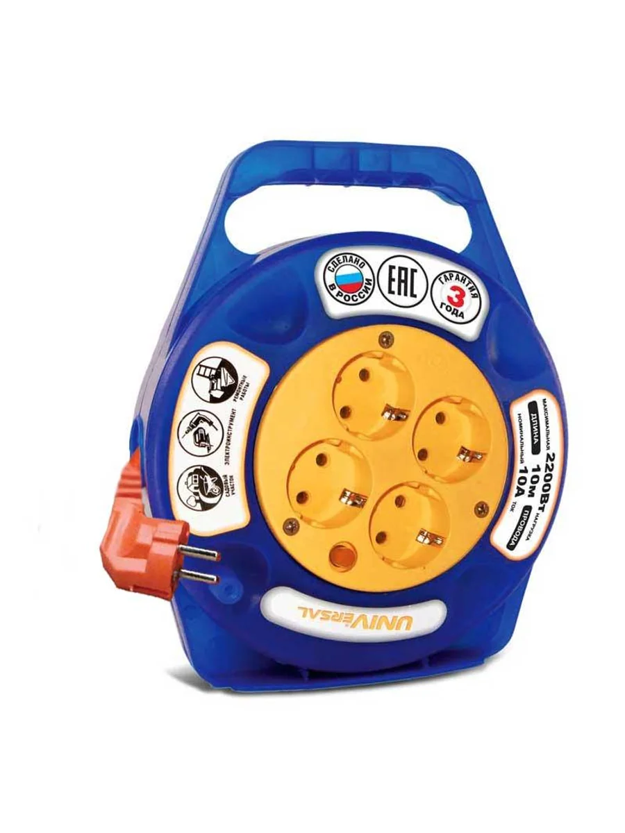 Удлинитель в закрыт. корпусе 4х10м с заземл. 6А IP20 У10-015 ПВС 3х0.75 термозащита защ. шторки UNIVersal 1671 - купить в KeepBuilding | KeepBuilding