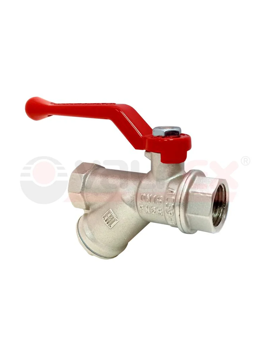 Кран шаровой латунный PREMIUM для ВОДЫ 1/2дюйм ВР/ВР бабочка с фильтром. НИКЕЛИР-Й 11Б27фт1М (48/12) VALFEX VF.293.NB1.012.PREMIUM