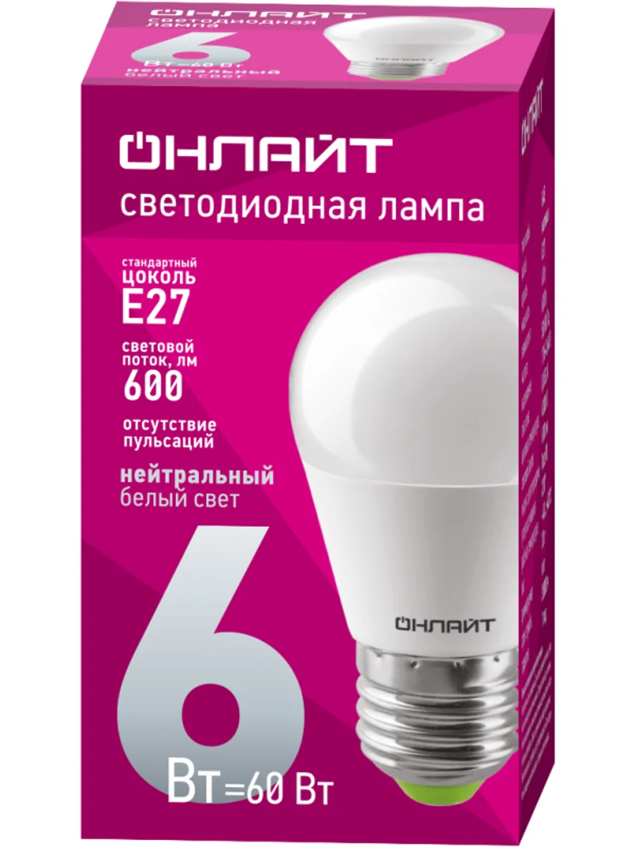 Лампа светодиодная 71 646 OLL-G45-6-230-4K-E27 6Вт шар 4000К нейтр. бел. E27 470лм 220-240В ОНЛАЙТ 71646 - купить в KeepBuilding | KeepBuilding