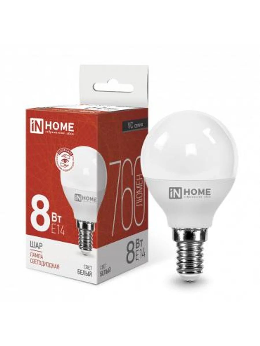 Лампа светодиодная LED-ШАР-VC 8Вт шар 4000К нейтр. бел. E14 760лм 230В IN HOME 4690612020556 - купить в KeepBuilding | KeepBuilding