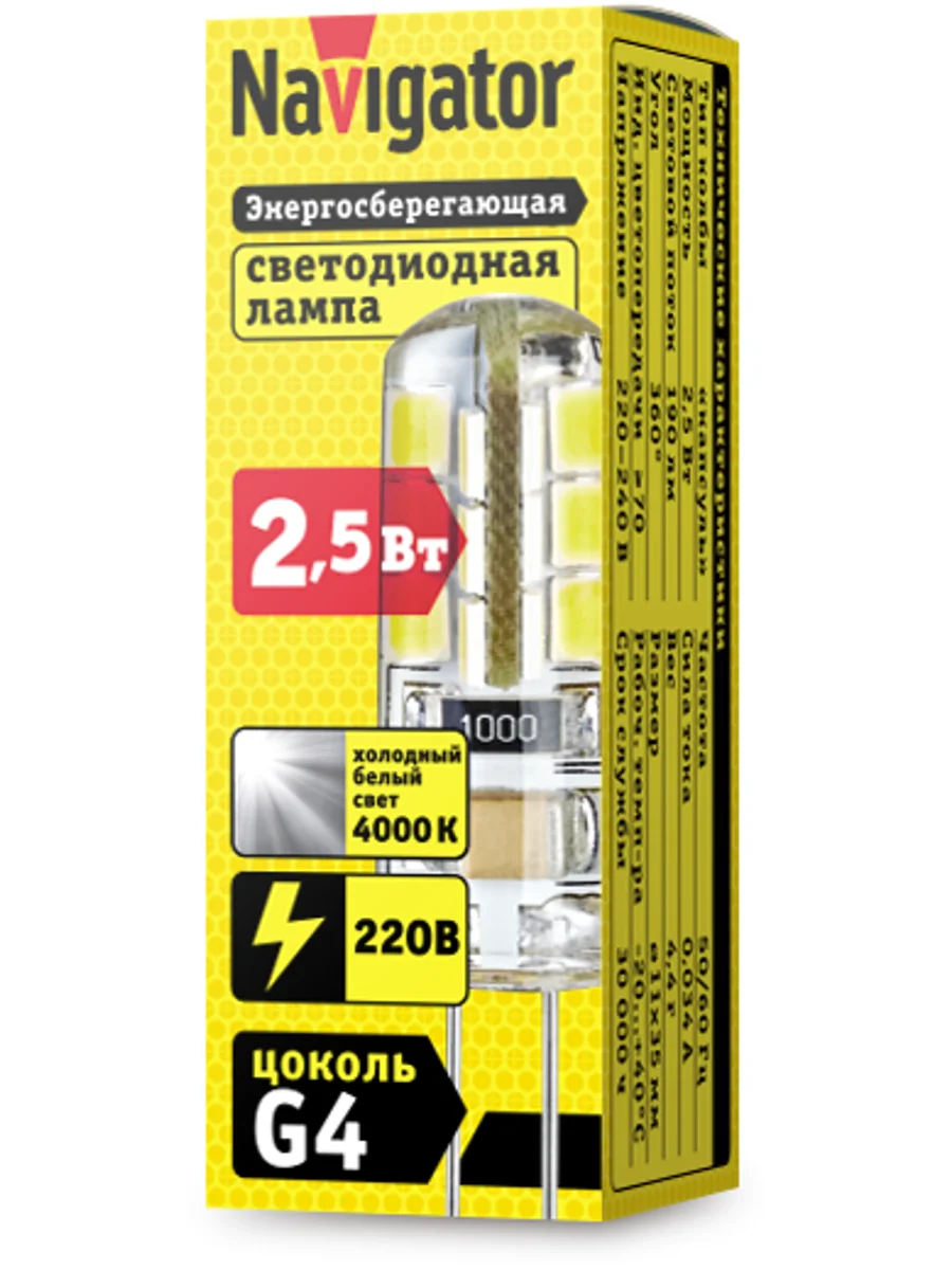 Лампа светодиодная 71 359 NLL-S-G4-2.5-230-4K 2.5Вт 4000К нейтр. бел. G4 190лм 220-240В Navigator 71359 - купить в KeepBuilding | KeepBuilding