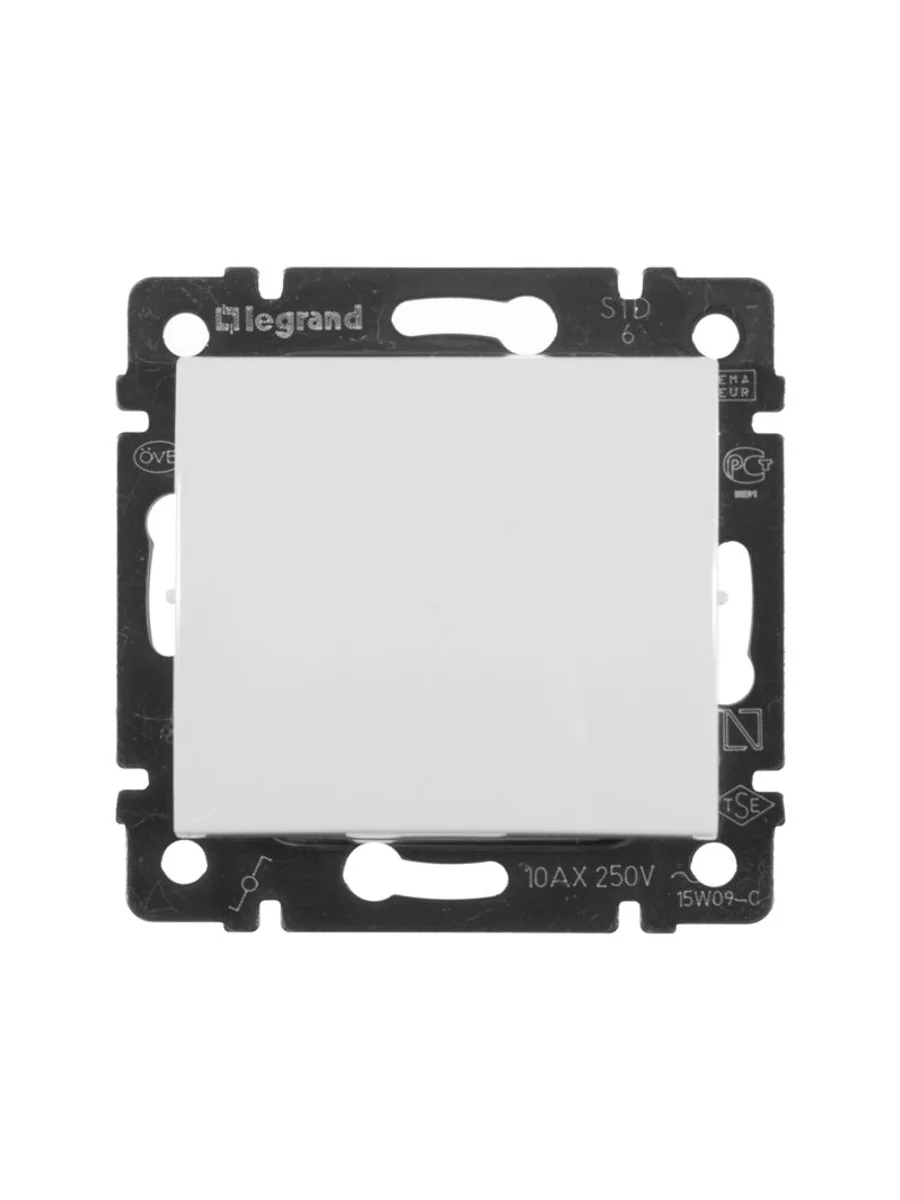 Переключатель одноклавишный VALENA для скрытого монтажа, номинальный ток 10 А, предназначен для управления одной нагрузкой с одного или с двух мест.
