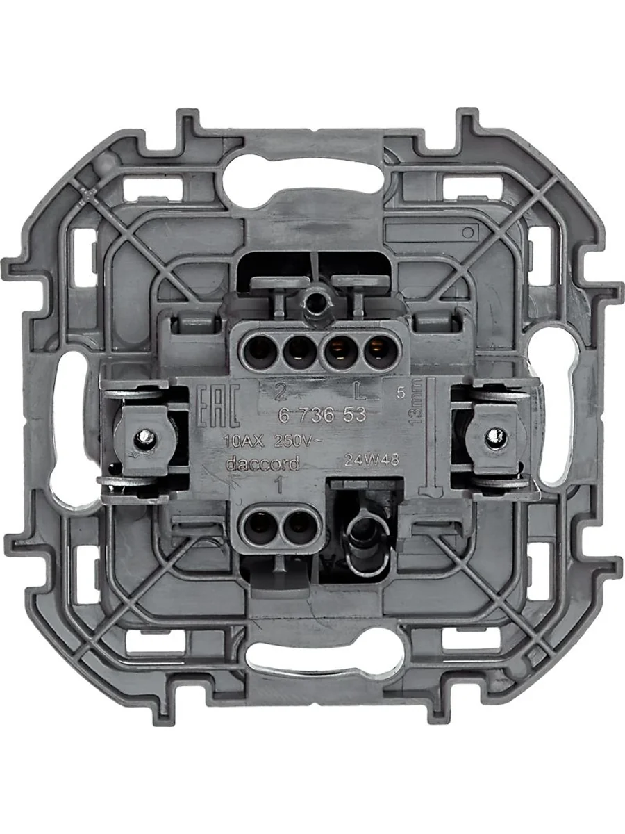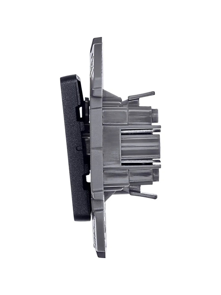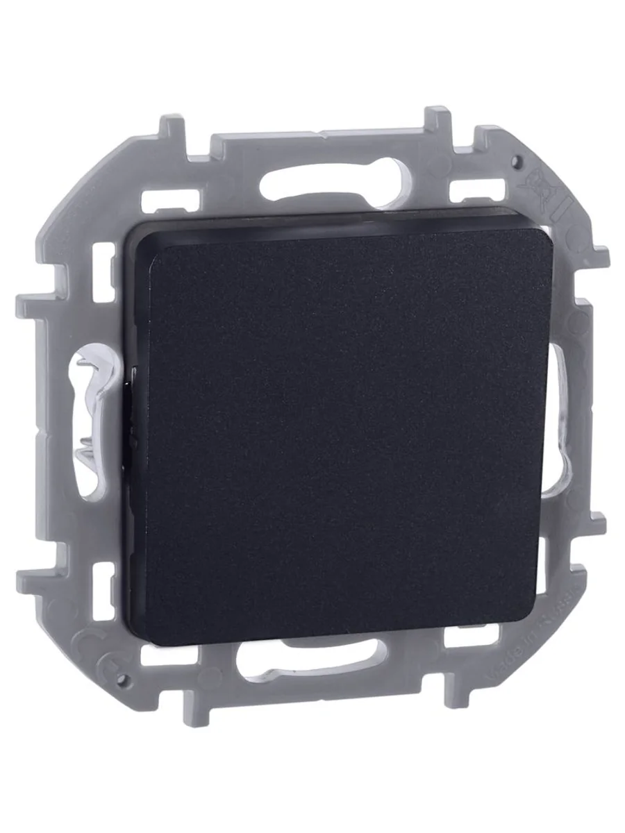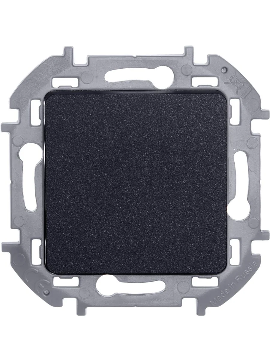 Переключатель одноклавишный скрытого монтажа Inspiria, цвет "Антрацит", номинальный ток 10АХ, напряжение ~250В, безвинтовые зажимы. Устанавливается в жилых и общественных помещениях для управления приборами освещения, вентиляции и т.д. Предназначен для управления одной нагрузкой с одного, двух или более мест (совместно с перекрёстными переключателями).