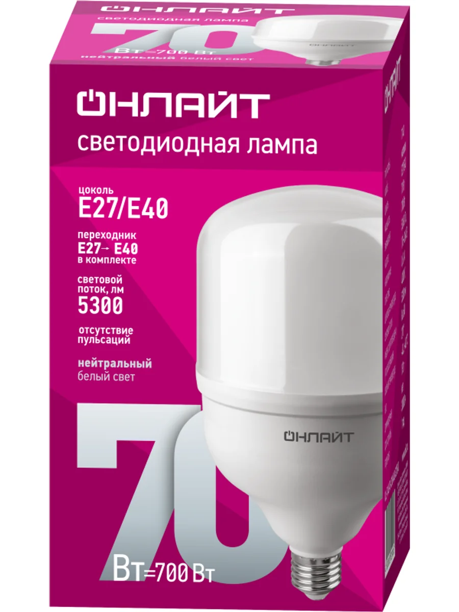 Лампа светодиодная высокомощная 82 906 OLL-T140-70-230-840-E27E40 70Вт 4000К нейтр. бел. E27/E40 5300лм 176-264В ОНЛАЙТ 82906 - купить в KeepBuilding | KeepBuilding