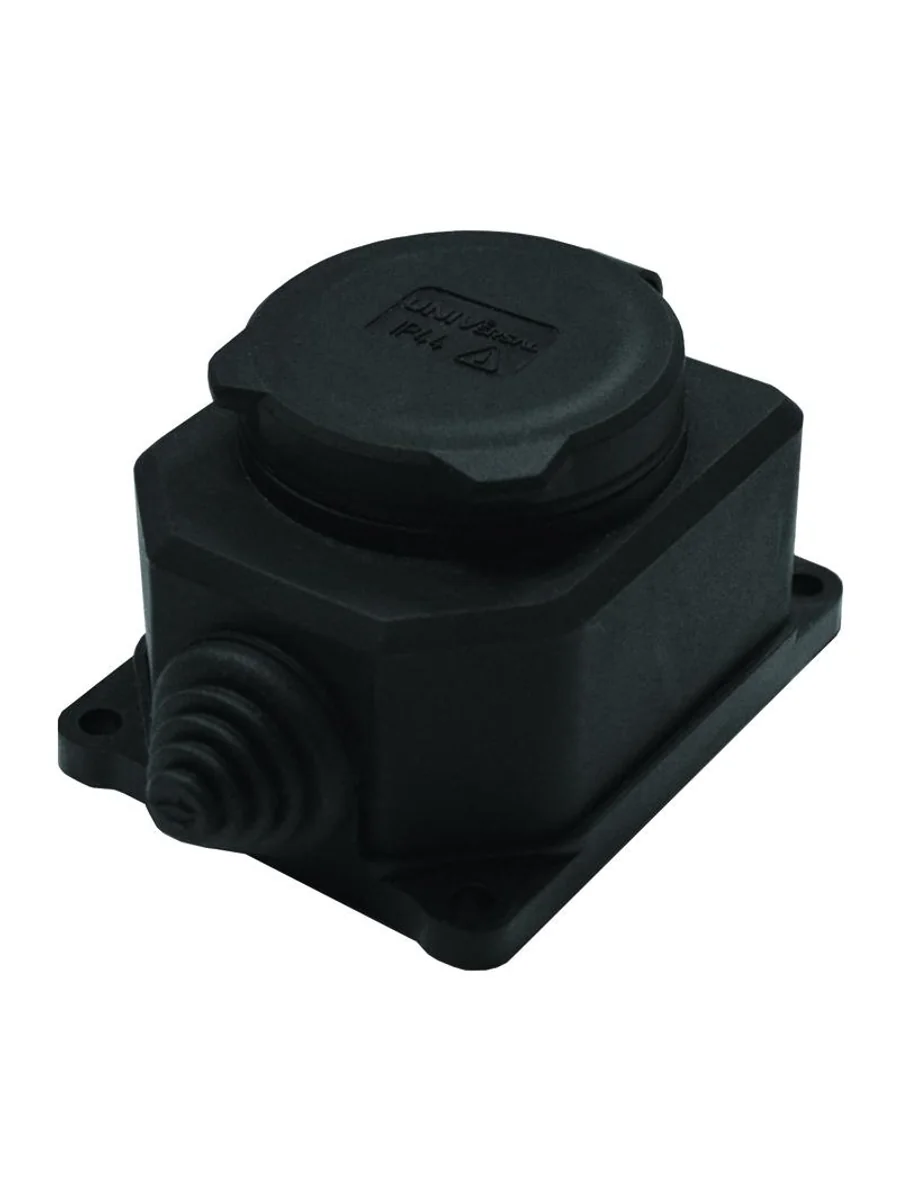 Розетка настенная 1-м 1ф "КОМПАКТ" с загл IP44 16А каучук черный UNIVersal 3032 | KeepBuilding