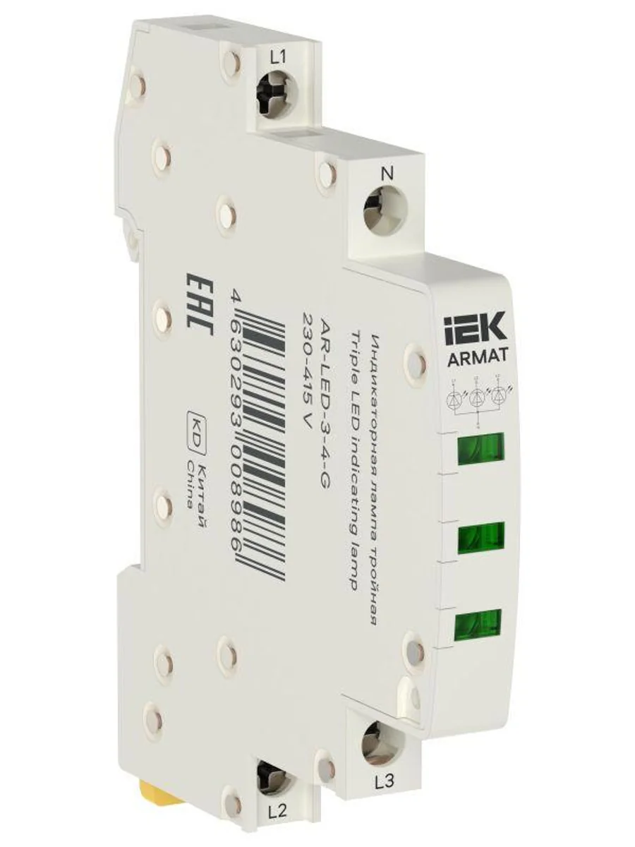 Лампа индикаторная тройная LED 230-415В AC зел. ARMAT IEK AR-LED-3-4-G - купить в KeepBuilding | KeepBuilding