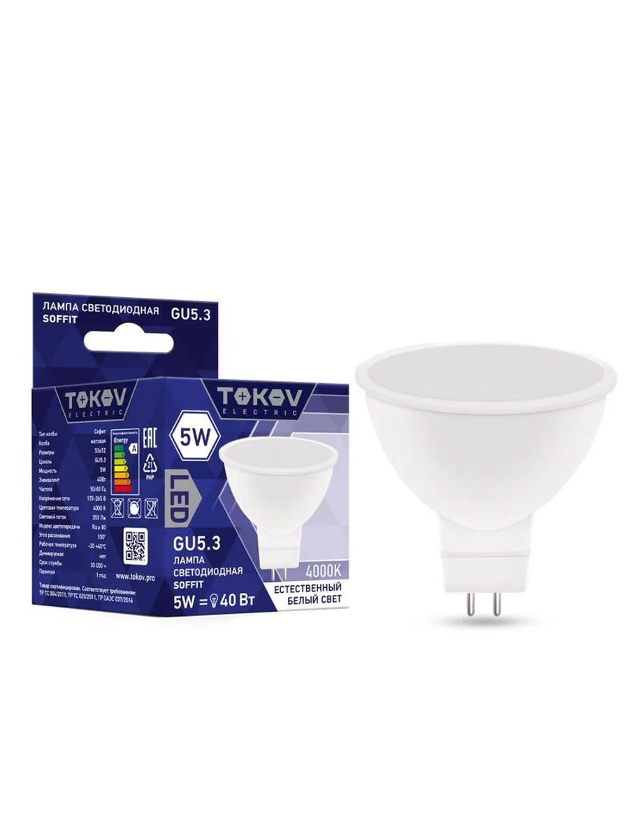 Лампа светодиодная 5Вт Soffit 4000К GU5.3 176-264В TOKOV ELECTRIC TKE-MR16-GU5.3-5-4K - купить в KeepBuilding | KeepBuilding