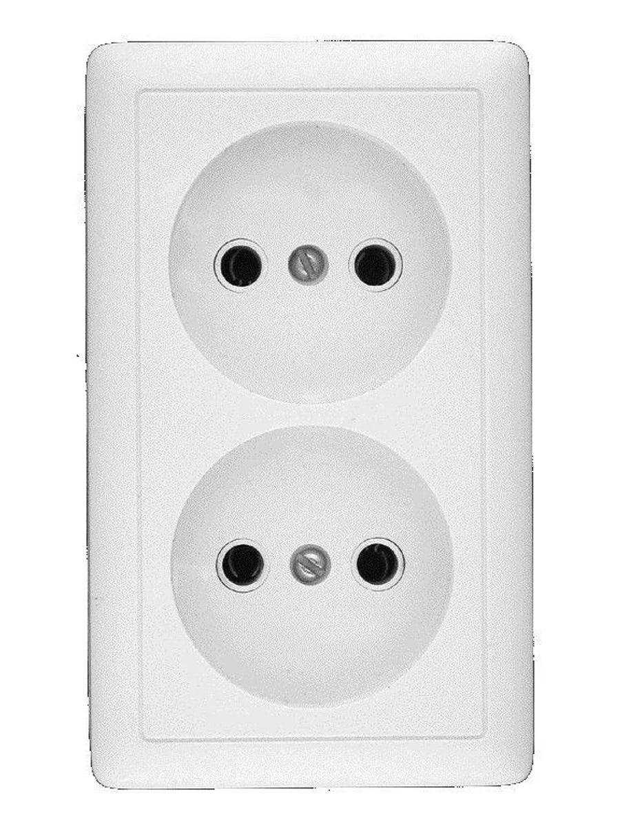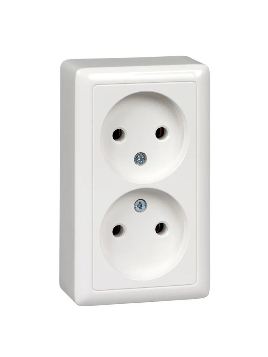 Розетка Systeme Electric (ранее Schneider Electric) ХИТ (открытой установки, цвет белый) двойная без заземления, без шторок предназначена для сетей до 250 В на ток до 16 А. Двойная розетка позволяет подключить два устройства в одном месте. Оптимальное соотношение цены и качества. Сделано в России.