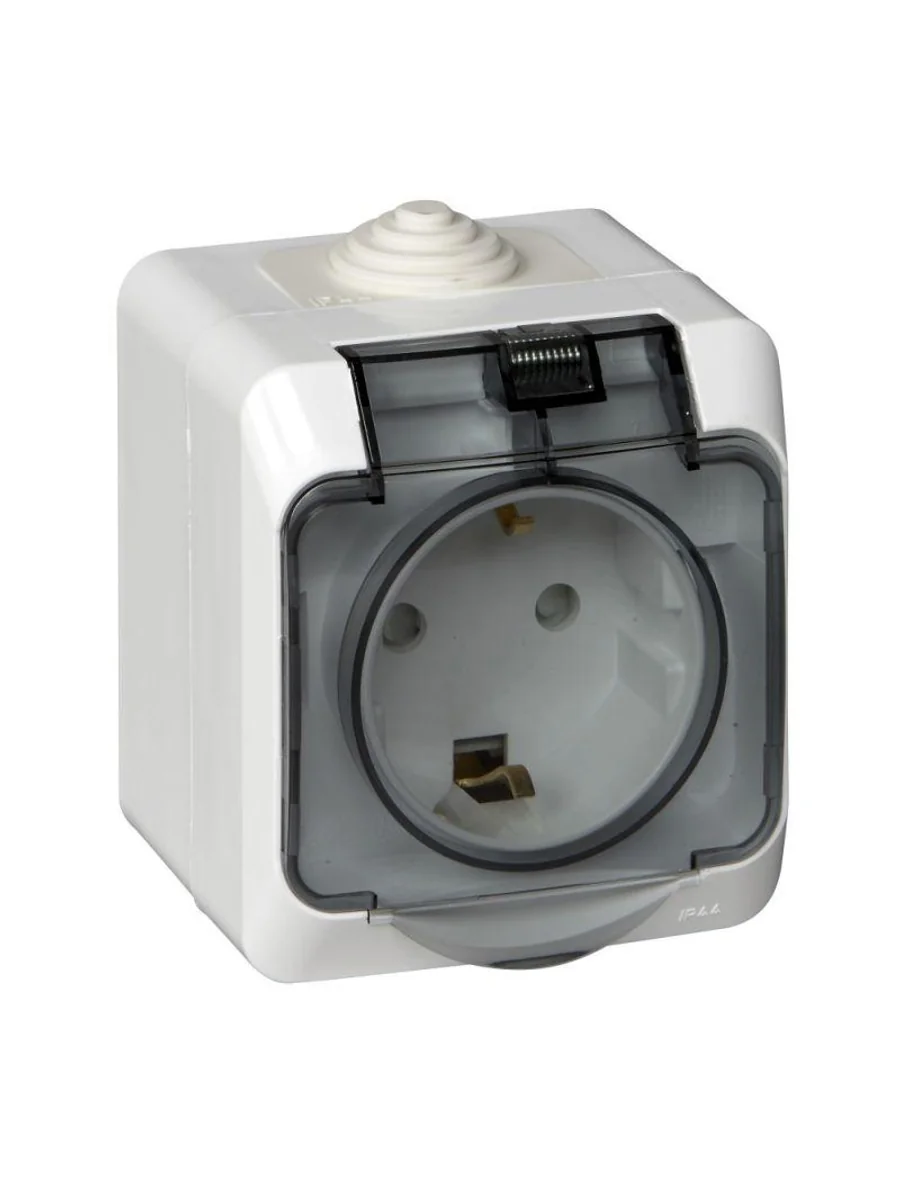 Розетка Systeme Electric (ранее Schneider Electric) ЭТЮД (белый, открытой установки) одноместная с заземлением и шторками предназначена для применения в сетях до 250В, на ток до 16А. Шторки обеспечивают дополнительную безопасность. Розетка удобна в применении и отлично подходит для ванной комнаты (IP44). Сделано в России.