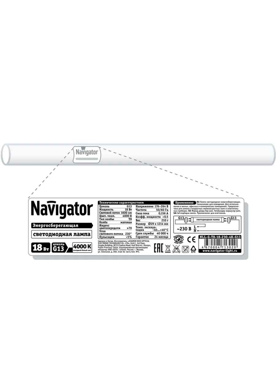 Лампа светодиодная 71 302 NLL-G-T8-18-230-4K-G13 18Вт линейная 4000К нейтр. бел. G13 1600лм 176-264В (аналог 36Вт 1200мм) Navigator 71302 - купить в KeepBuilding | KeepBuilding