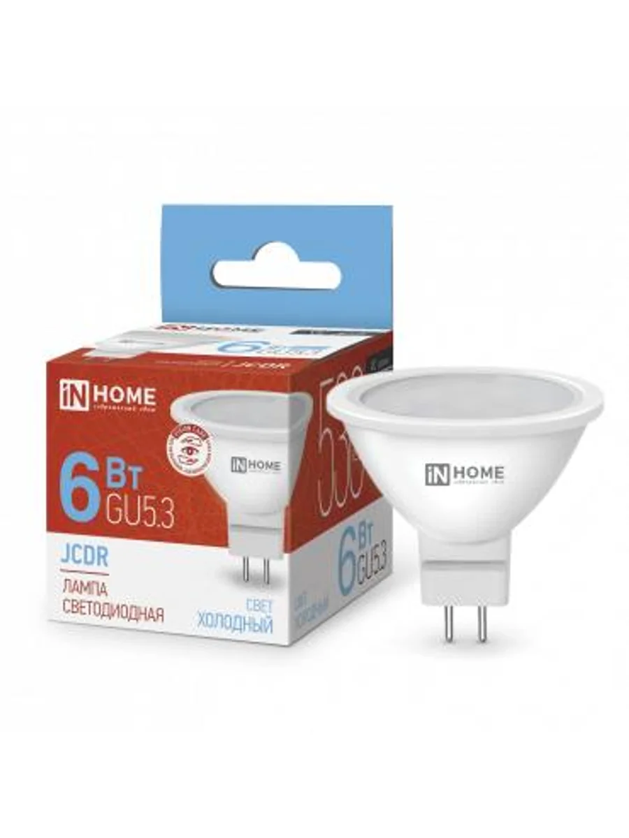 Лампа светодиодная LED-JCDR-VC 6Вт рефлектор 6500К холод. бел. GU5.3 530лм 230В IN HOME 4690612030739 - купить в KeepBuilding | KeepBuilding