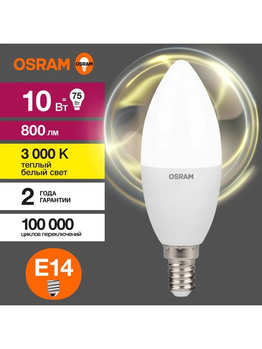 Лампа светодиодная LED Value LVCLB75 10SW/830 10Вт свеча матовая E14 230В 10х1 RU OSRAM 4058075579125 - купить в KeepBuilding | KeepBuilding