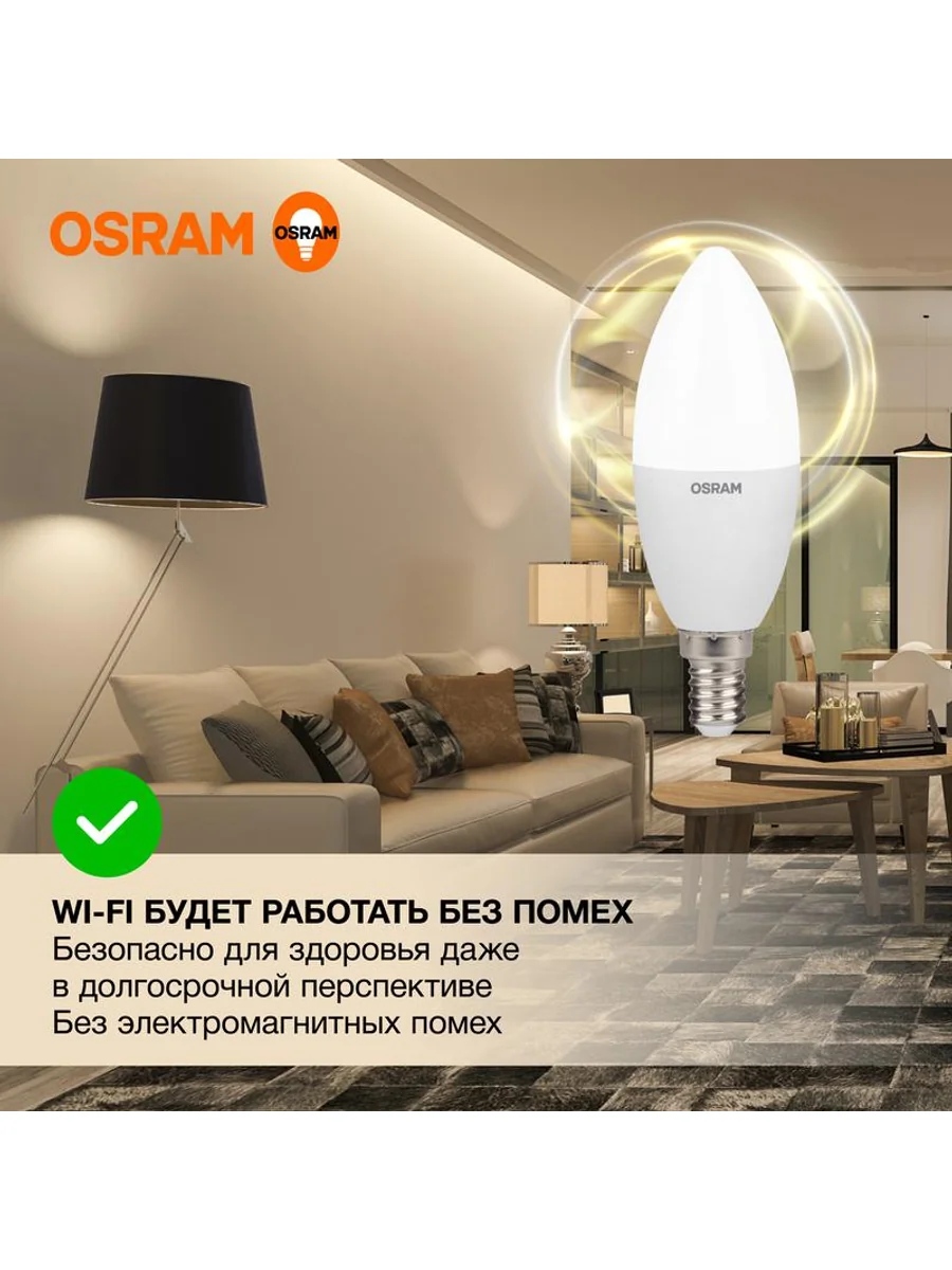 Светодиодные лампы OSRAM - разумная замена традиционным лампам накаливания или галогенным лампам. Светодиодные лампы OSRAM снижают затраты на освещение до 90% при сохранении привычного уровня освещенности. Эта лампа OSRAM серии LED Value выполнена в форме колбы B ("свеча") с цоколем E14. Материал колбы - пластик, исполнение - матовое. Световой поток 800 люмен, что соответствует лампе накаливания на 75 Вт. Такие лампы применяются для внутреннего освещения, хотя в закрытом светильнике можно использовать и на улице. Эта лампа излучает теплый белый свет, угол пучка - широкий. Качество света на высоте: низкие пульсации защищают глаза, а высокий индекс цветопередачи позволяет видеть мир в его истинном цвете. Кроме того, лампы OSRAM полностью безопасны для здоровья, поскольку в них нет опасных материалов по европейскому стандарту RoHS, а также они не производят вредных электромагнитных излучений, что подтверждено ЭМС (сертификат электромагнитной совместимости). Лампа проработает долго: срок службы - 25000 часов, 2 года гарантии. Светодиодные лампы OSRAM - умный выбор для здоровья семьи и кошелька!