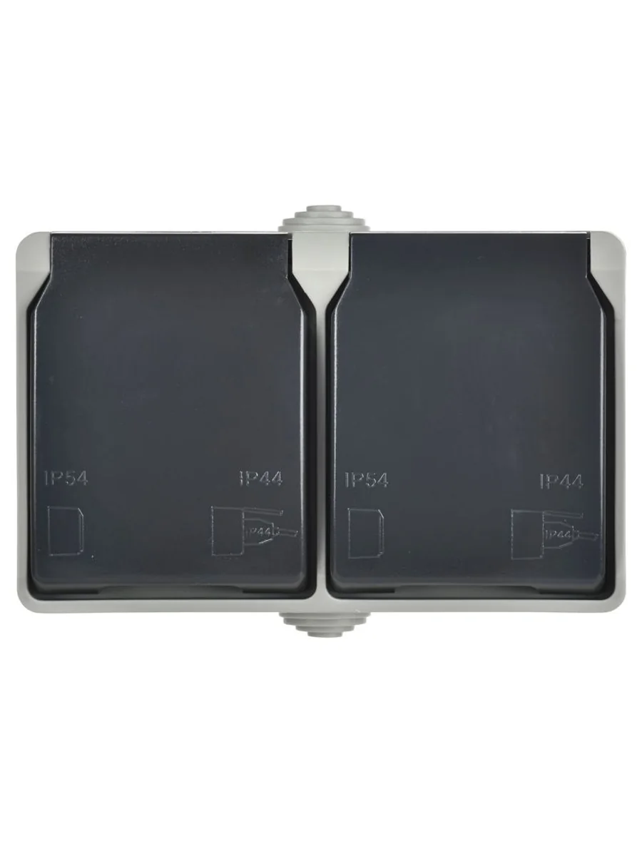Розетка 2-м ОП Форс РСб22-3-ФСр 16А IP54 с заземл. с крышкой сер. IEK ERS22-K03-16-54-DC - купить в KeepBuilding | KeepBuilding