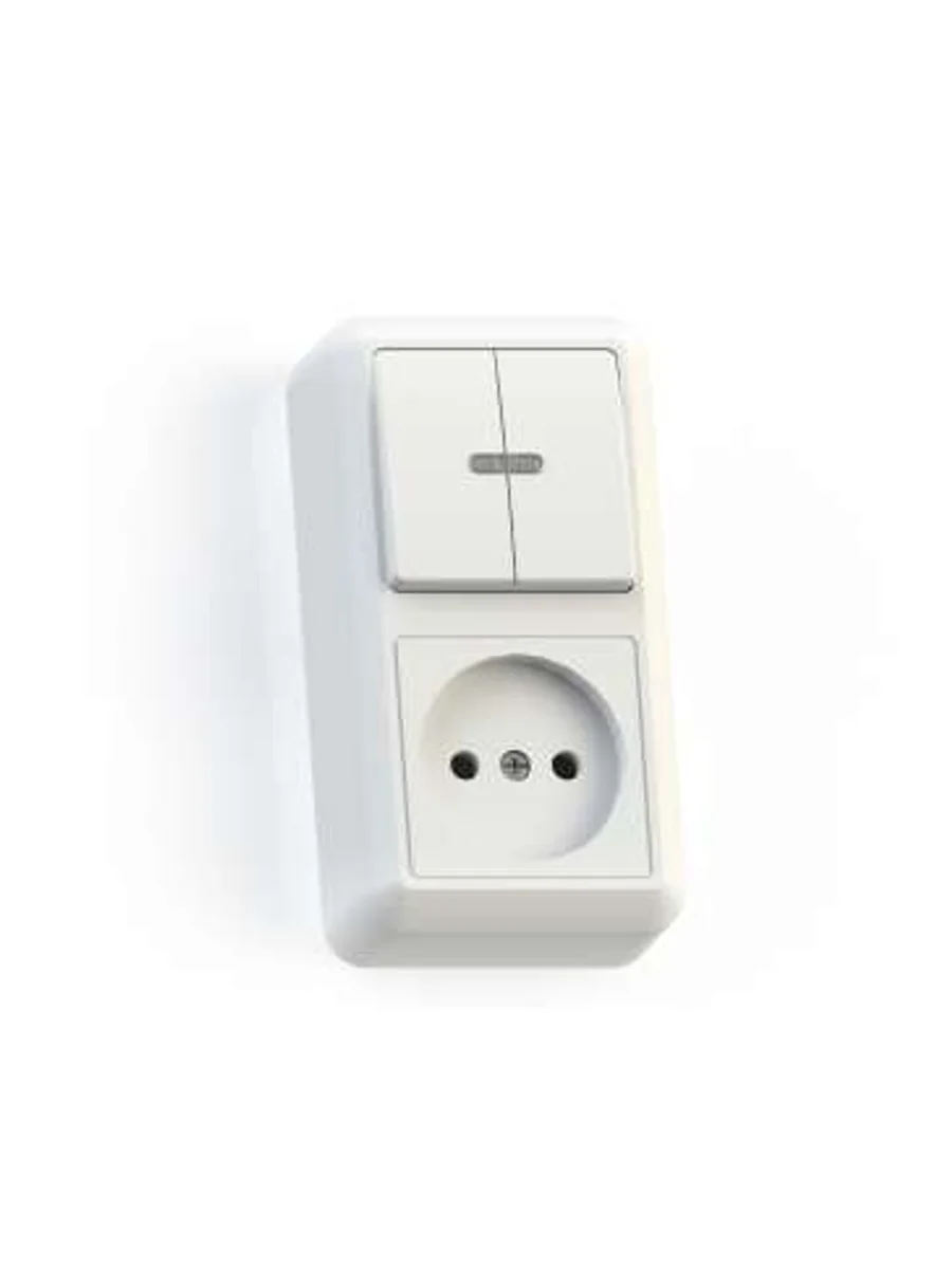 Блок комбинированный ОП БКВР-431 Оптима (2-кл. выкл. с подсветкой + розетка) бел. Кунцево 8063 - купить в KeepBuilding | KeepBuilding