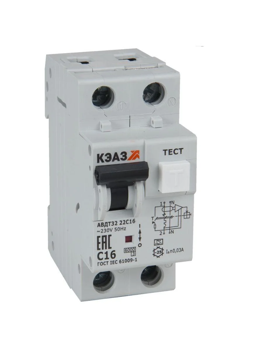 Выключатель автоматический дифференциального тока 2п C 16А 30мА тип A 6кА АВДТ32-22C16 A УХЛ4 КЭАЗ 228065 - купить в KeepBuilding | KeepBuilding