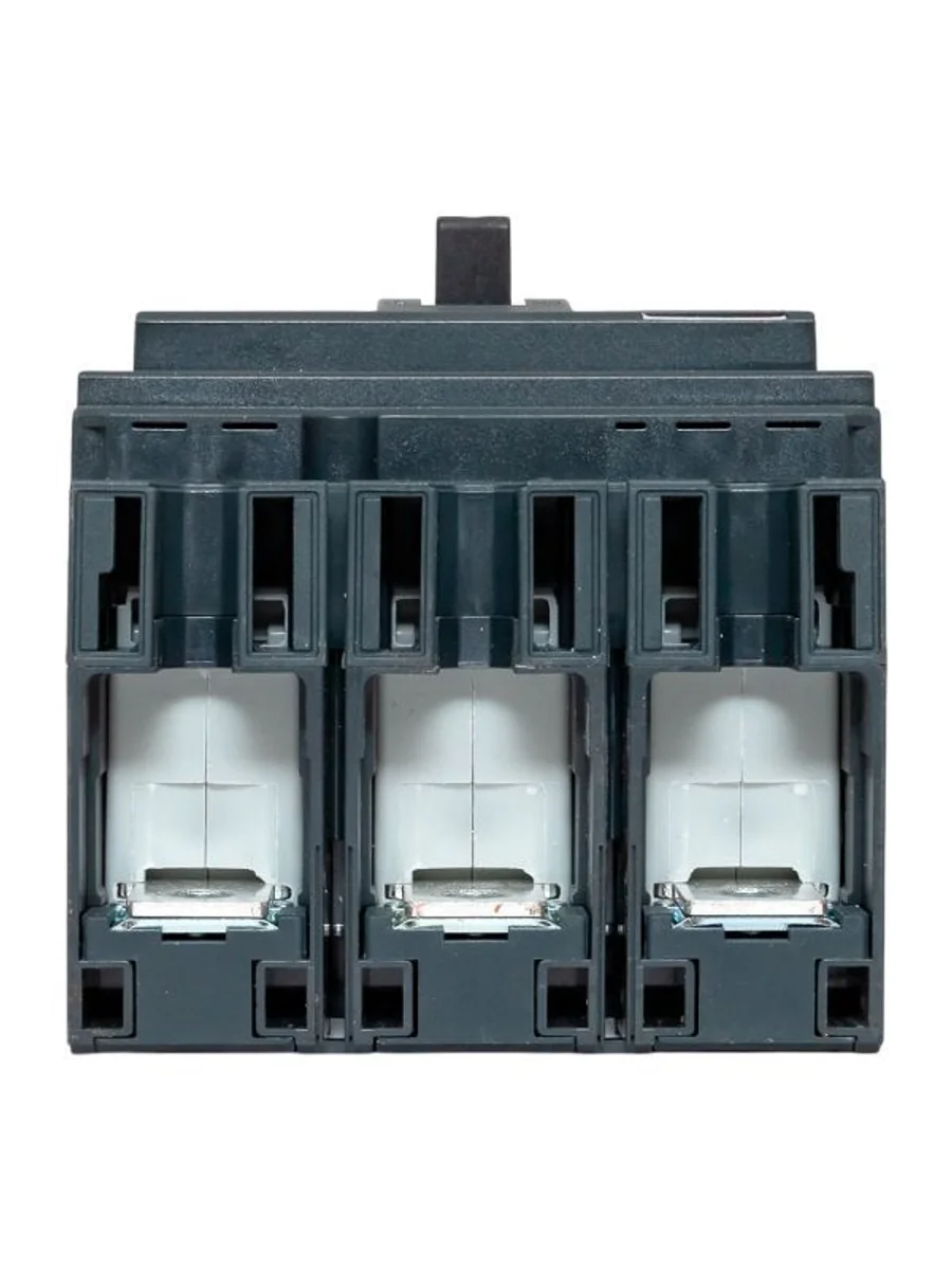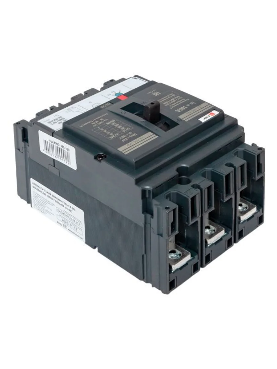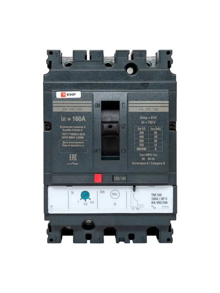 Выключатель ВА-99С выполнен в виде моноблока и состоит из основания и крышки с фальш-панелью, в которой имеется окно для рукоятки управления и толкатель кнопки «Тест» – для проверки механизма отключения выключателя.Основание выполнено из термостойкой пластмассы, не поддерживающей горение и являющейся несущей конструкцией для присоединительных зажимов, блок ротоактивных контактов с двумя дугогасительными камерами представляет собой жесткую сборку в отдельном корпусе, механизма управления, блока защиты от сверхтоков и перегрузки (расцепителя). Крышка закрывает все подвижные элементы механизма управления и внутренние токоведущие части.