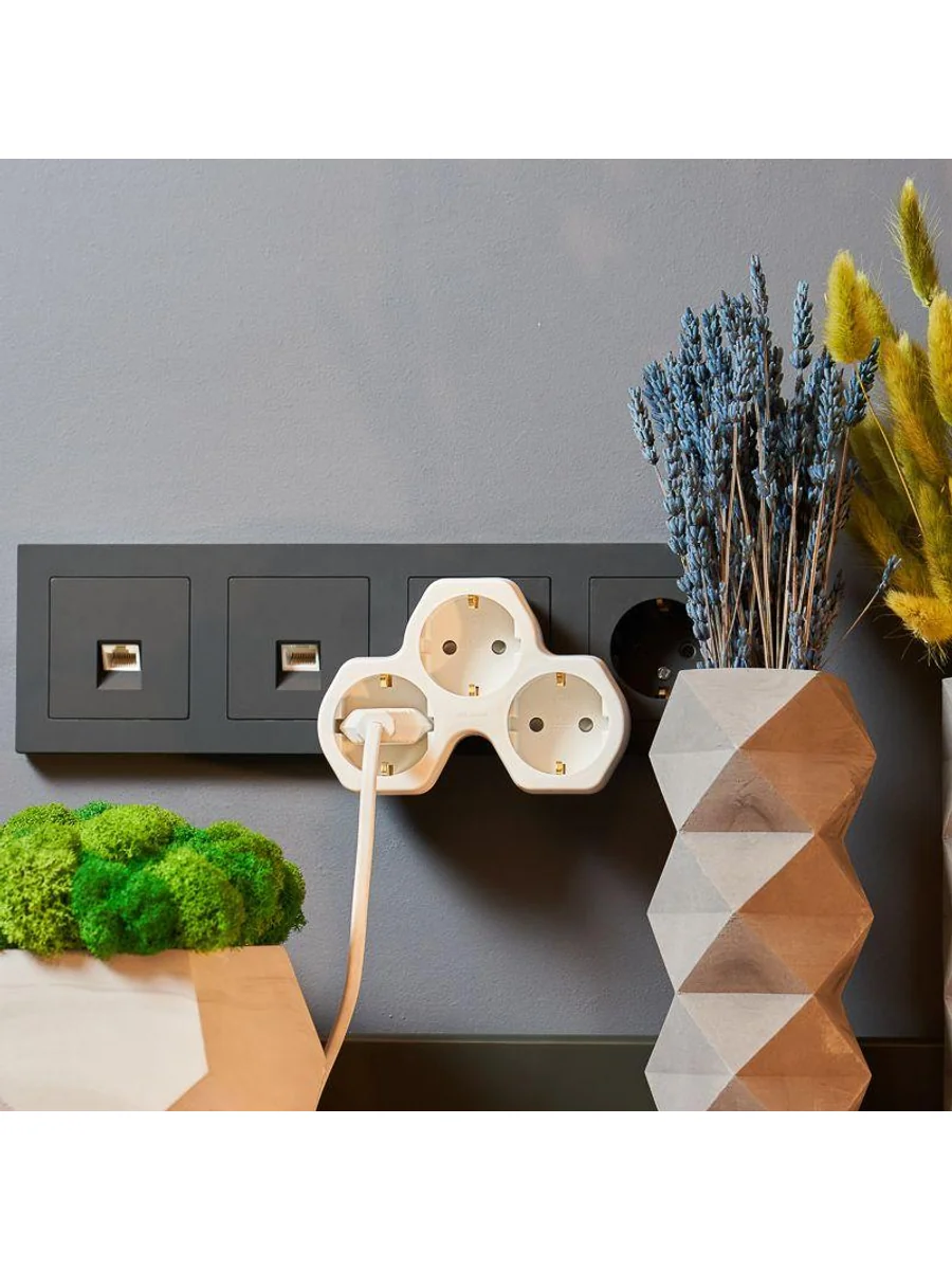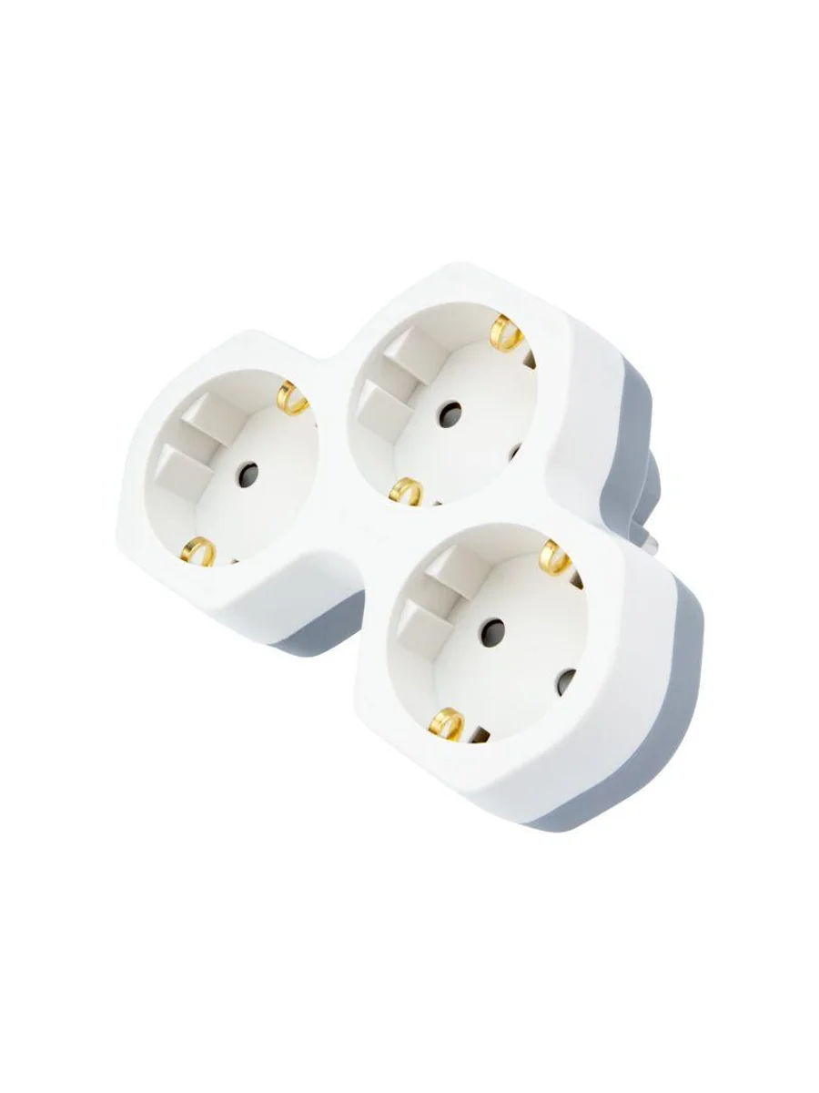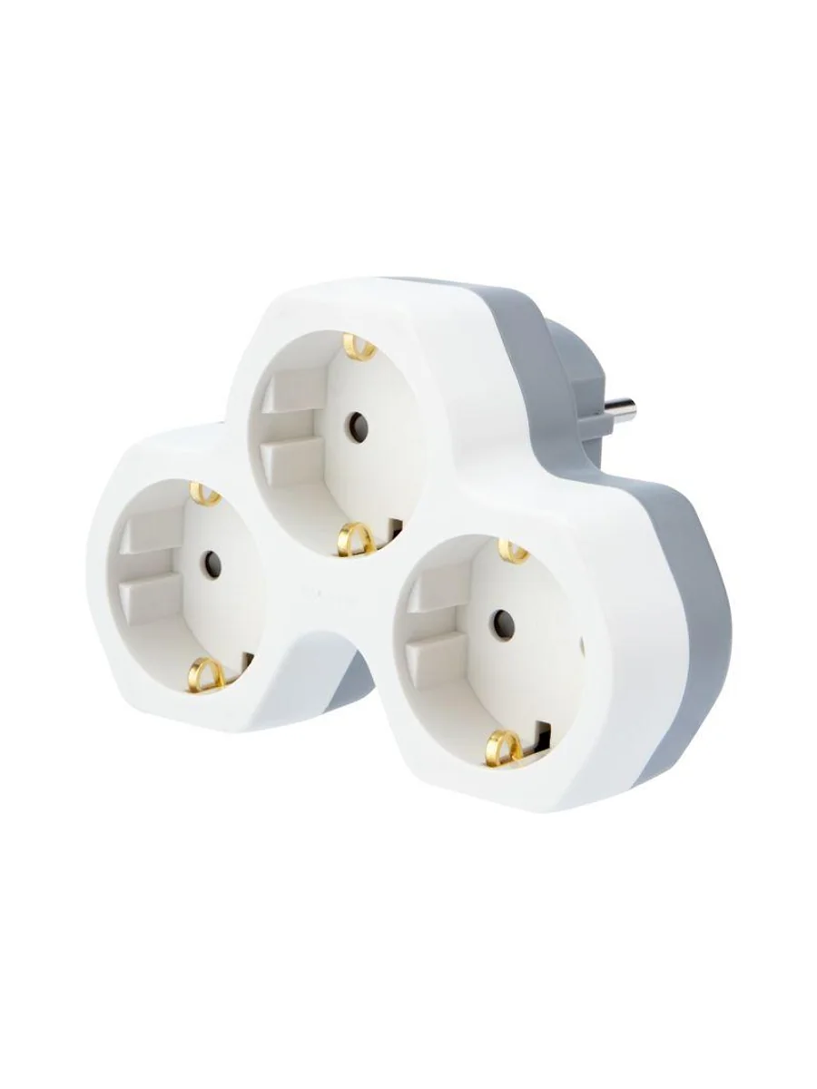 Электрический тройник REXANT предназначен для одновременного подключения к электрическим сетям с напряжением 220 В сразу три прибора. Розетки обеспечивают плотное обжатие присоединяемых вилок за счет упругих пластин контактной группы адаптера. Высококачественный пластиковый корпус обеспечивает надежную изоляцию от токопроводящих частей. Тройник можно использовать в помещениях, где могут находиться маленькие дети, так как шторки надежно блокируют доступ к контактам розетки других мелких предметов: спиц, карандашей, бусин и др. Напряжение: 250 В Частота тока: 50 Гц Номинальный ток: 16 А Заземление контактов: есть Защитные шторки: есть Цвет: бело-серый Материал корпуса: полипропилен