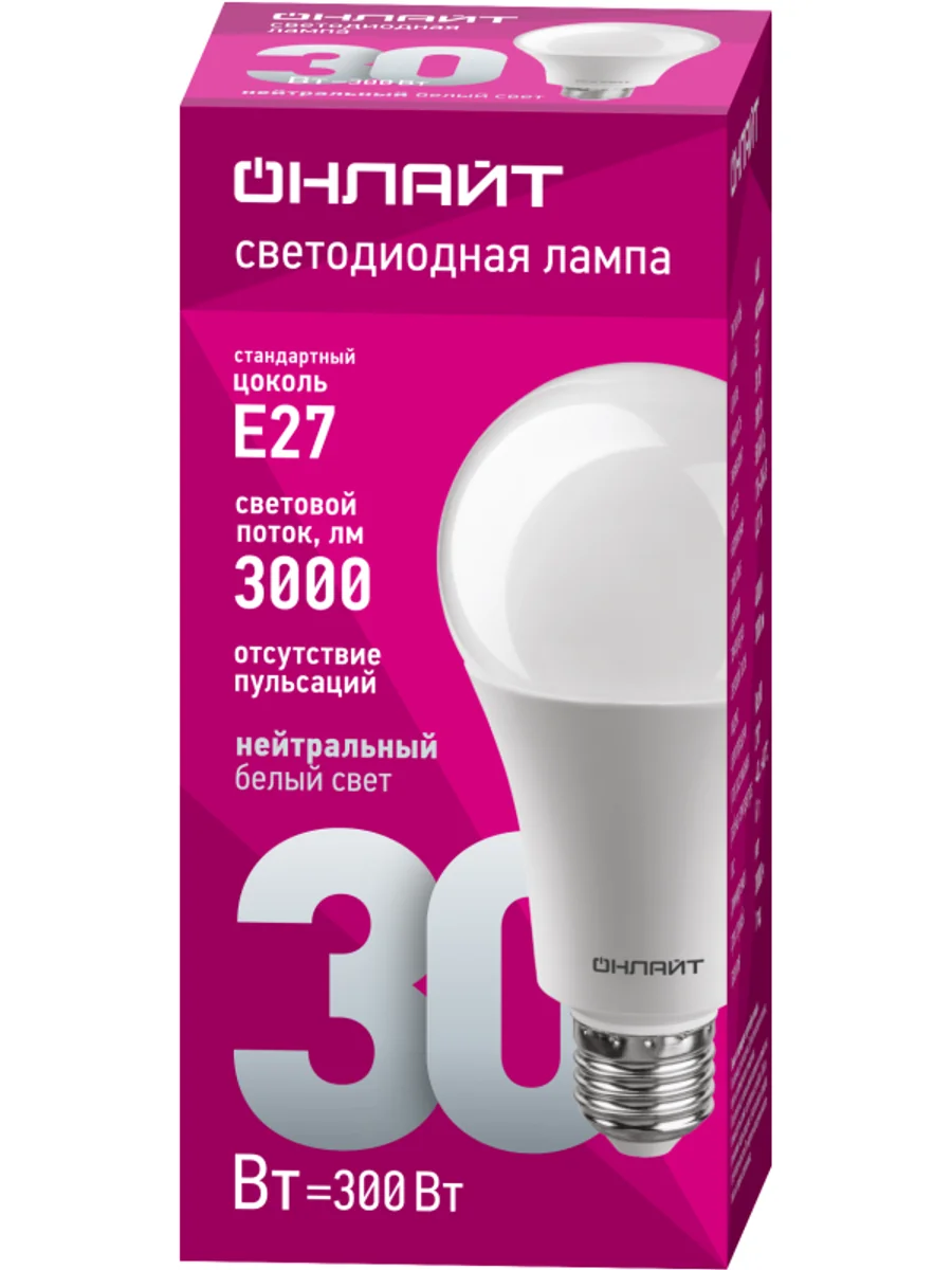 Лампа светодиодная 61 971 OLL-A70-30-230-4K-E27 30Вт ОНЛАЙТ 61971 - купить в KeepBuilding | KeepBuilding