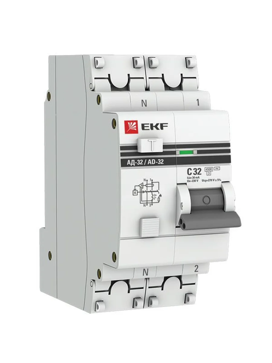 Выключатель автоматический дифференциального тока 2п (1P+N) C 32А 30мА тип AC 4.5кА АД-32 2мод. защита 270В электрон. PROxima EKF DA32-32-30-pro - купить в KeepBuilding | KeepBuilding