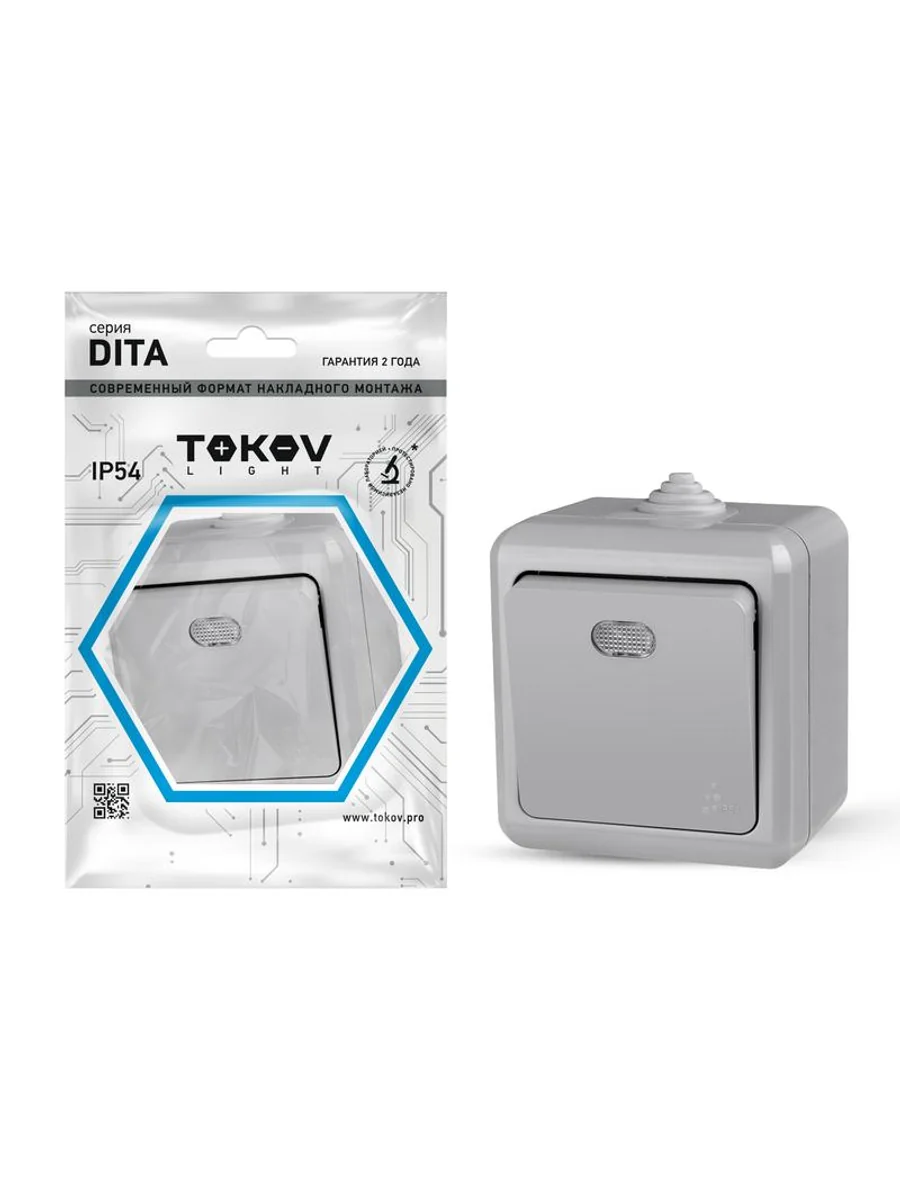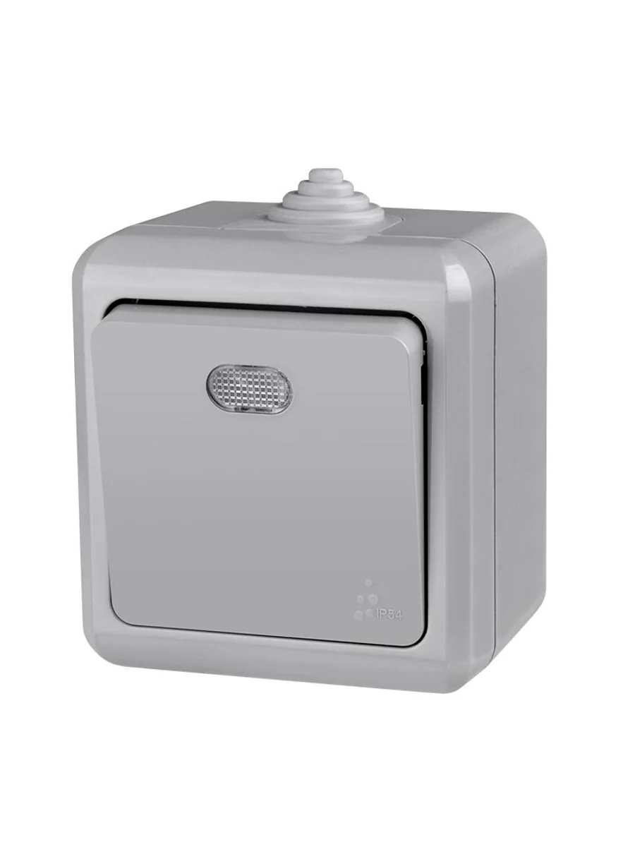 Выключатель 1-кл. ОП Dita IP54 10А 250В с индикацией сер. TOKOV ELECTRIC TKL-DT-V1I-C06-IP54 - купить в KeepBuilding | KeepBuilding