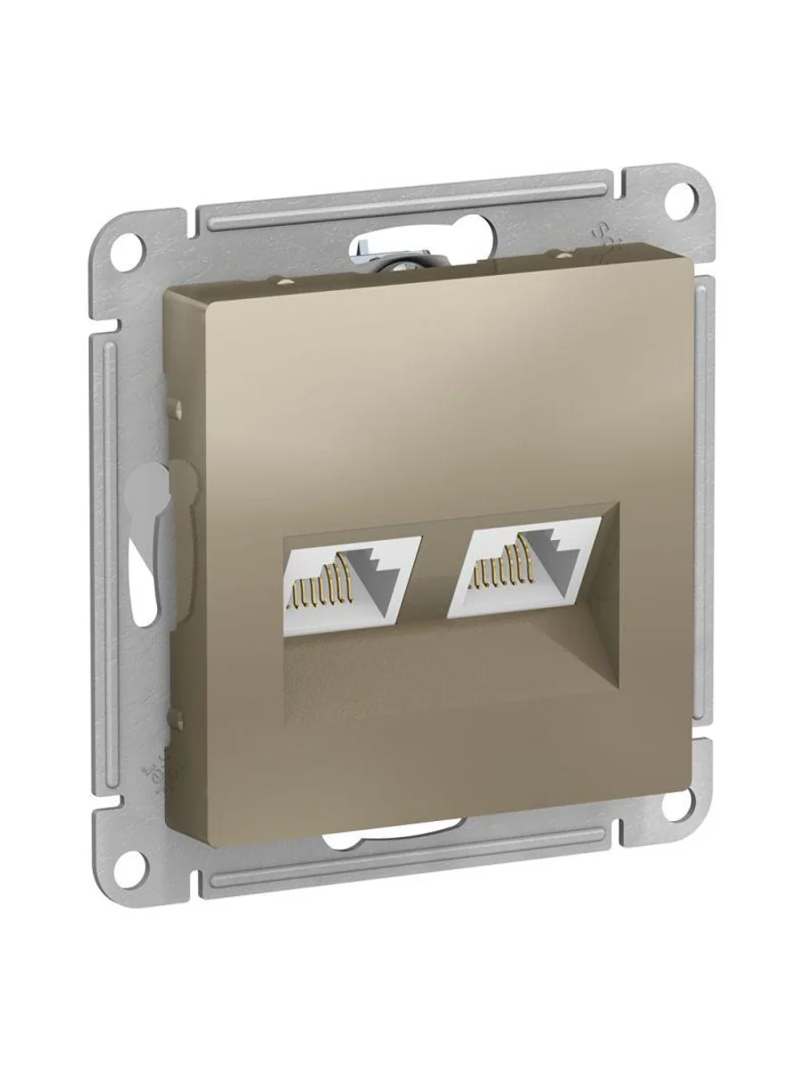 Механизм Systeme Electric (ранее Schneider Electric) серии AtlasDesign в цвете шампань двойной розетки компьютерной с разъёмом RJ45 категория 5е предназначен для удобного и быстрого подключения вашего компьютера к локальной вычислительной сети. Лицевые детали из качественного ABS-пластика, устойчивого к царапинам и УФ-излучению. Усиленные прямые монтажные лапки для лучшей фиксации механизма в монтажной коробке.